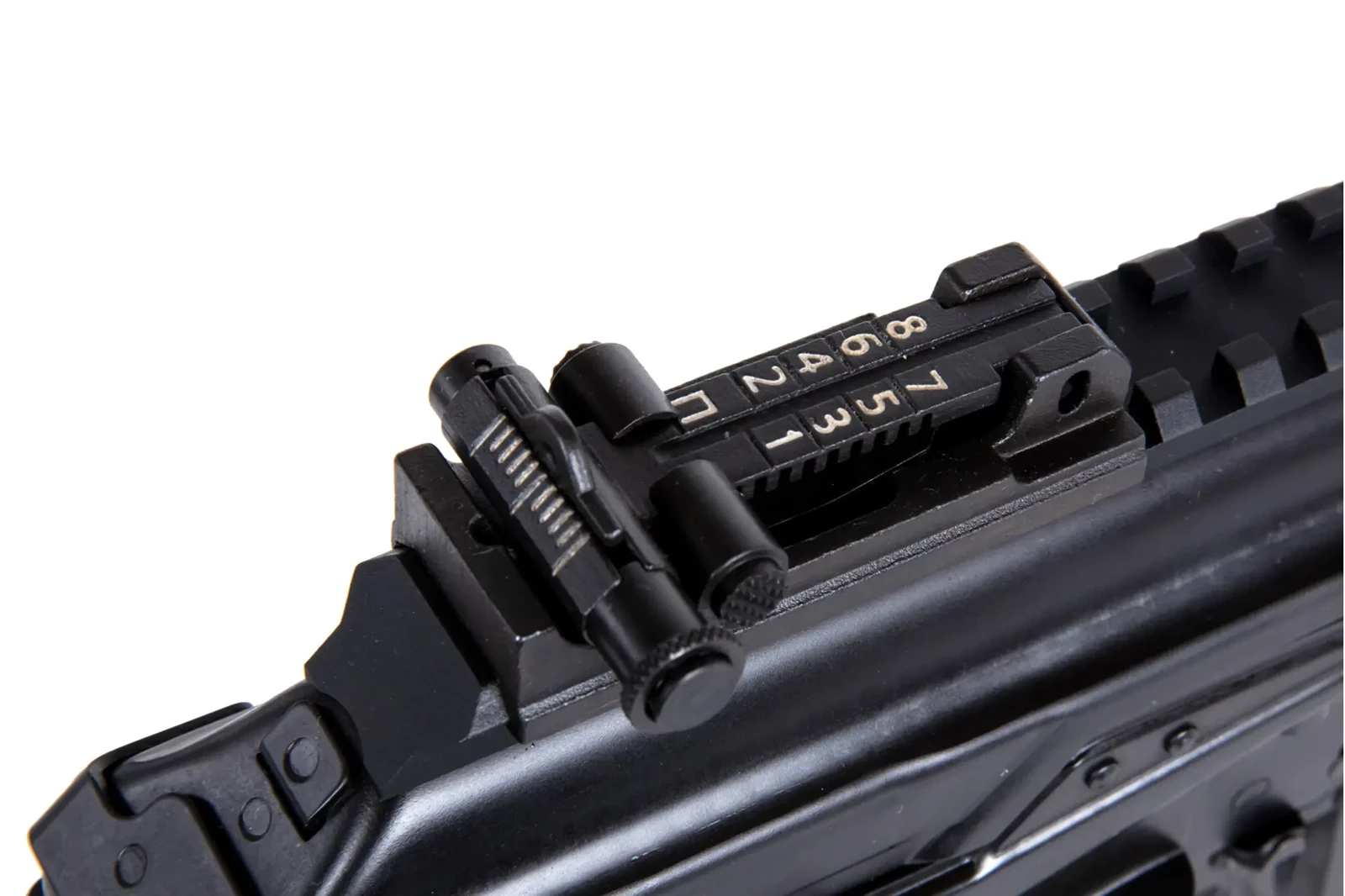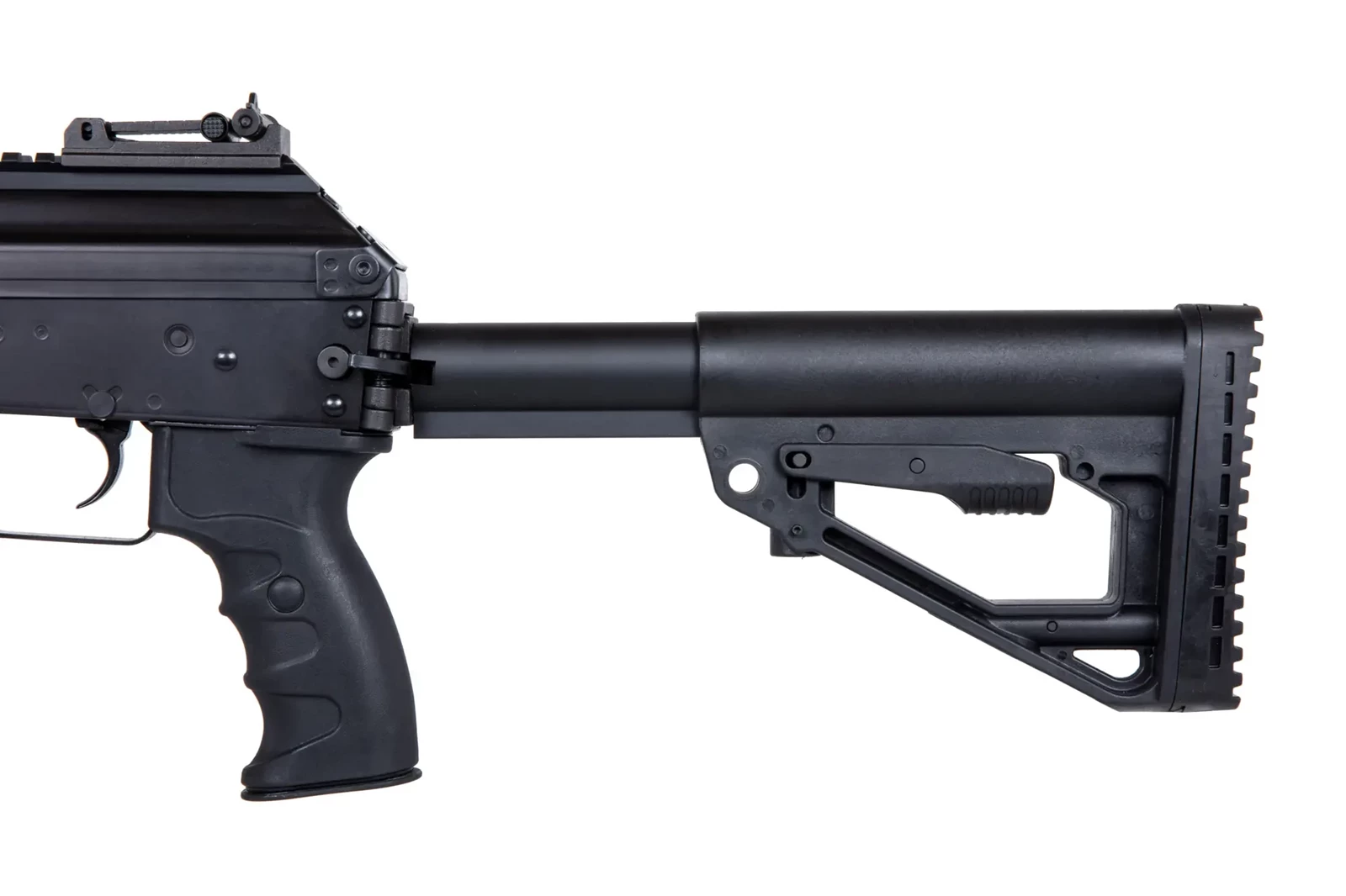 Sama konstrukcja względem klasycznych AK została wyposażona w szereg udogodnień takich jak powiększony selektor pozwalający zmianę trybów ognia palcem wskazującym, grzbietową szynę ris pozwalającą założenie optyki, ergonomiczny chwyt pistoletowy oraz składaną i regulowaną kolbę.