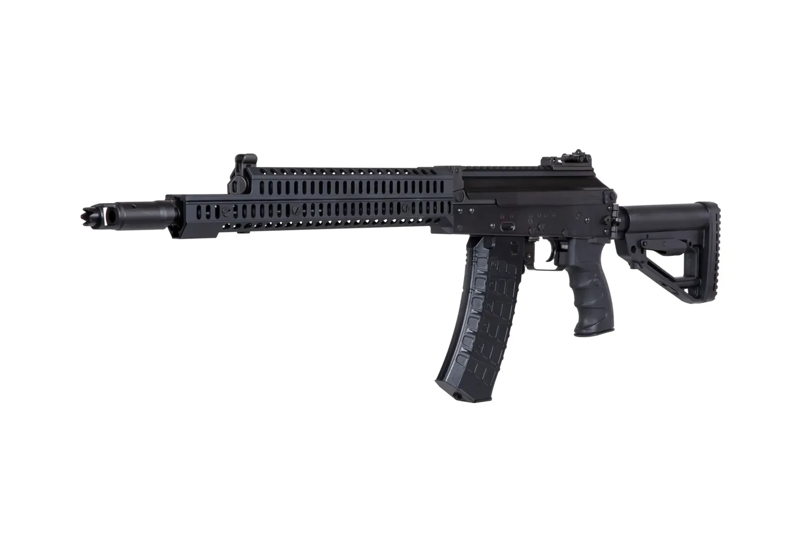 Wysokiej jakości replika karabinka AK-12 produkcji LCT z fabrycznie zamontowaną repliką modularnego łoża Zenitco SPORT-12U.