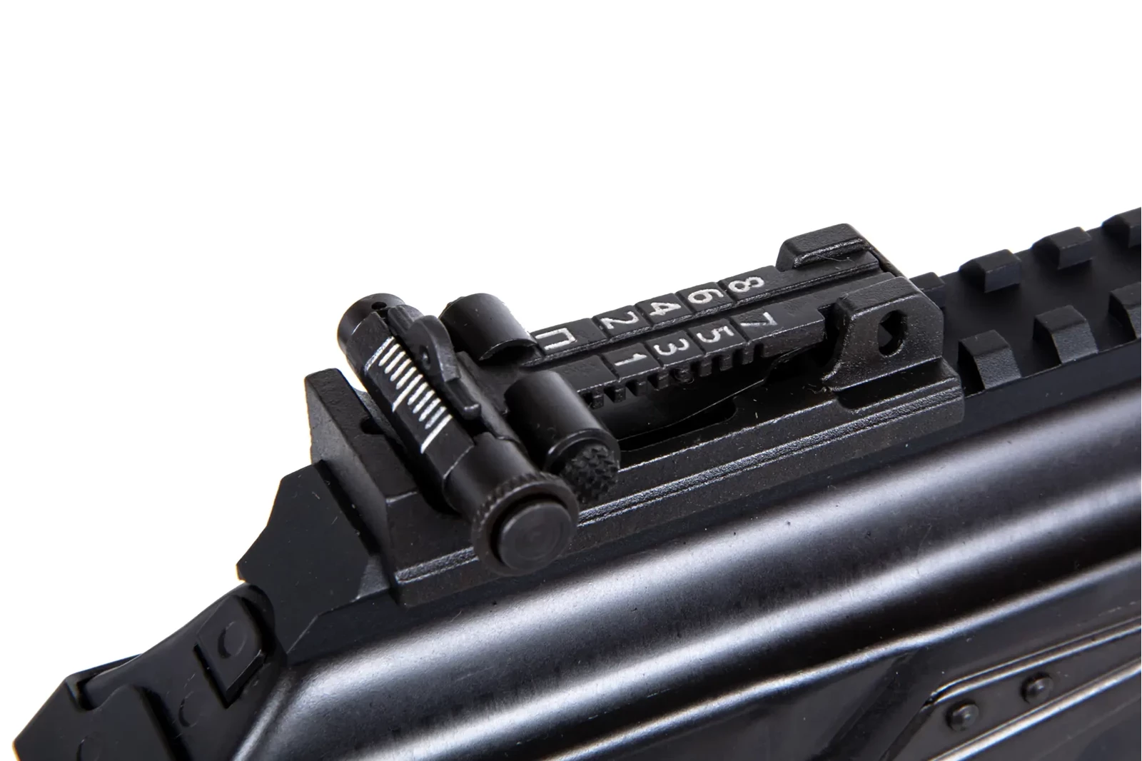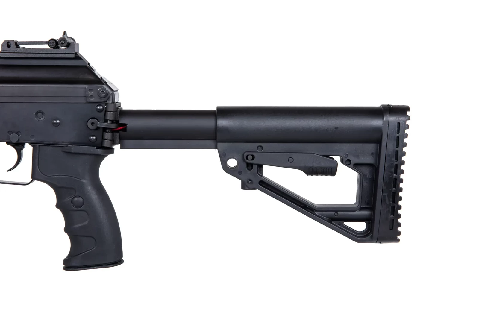 Sama konstrukcja względem klasycznych AK została wyposażona w szereg udogodnień takich jak powiększony selektor pozwalający zmianę trybów ognia palcem wskazującym, grzbietową szynę ris pozwalającą założenie optyki, ergonomiczny chwyt pistoletowy oraz składaną i regulowaną kolbę.