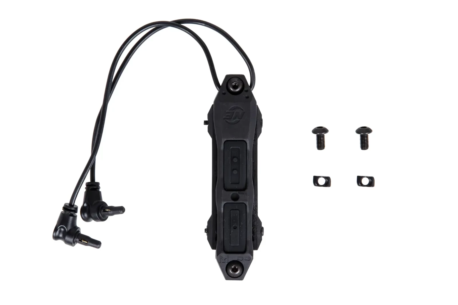Wzmocniony, podwójny włącznik latarek i wskaźników laserowych, produkcji WADSN. Obudowa włącznika została wykonana z wysokiej jakości polimeru, przyciski zostały wykonane z gumy.
