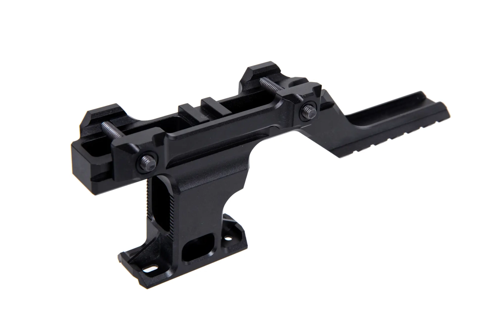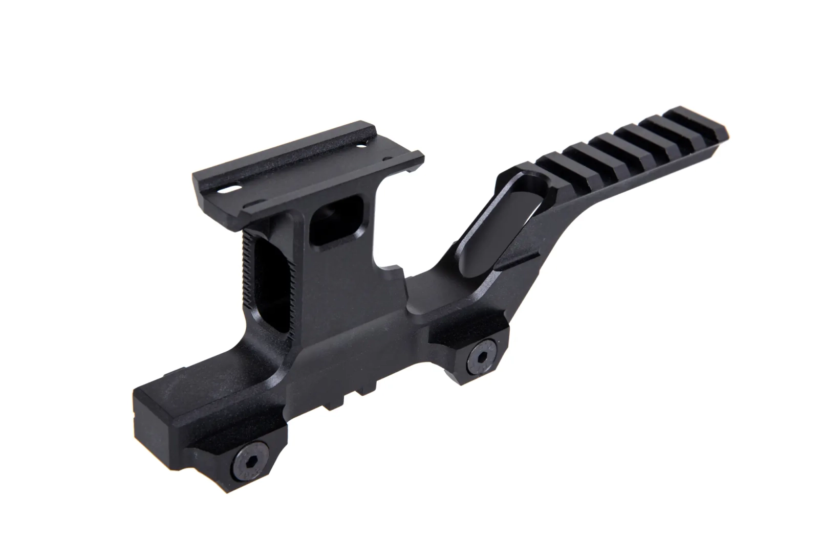 Wykonany z aluminium podwyższony montaż optyki z ramieniem wysięgowym przeznaczonym na montaż modułów laserowych typu PEQ/NGAL