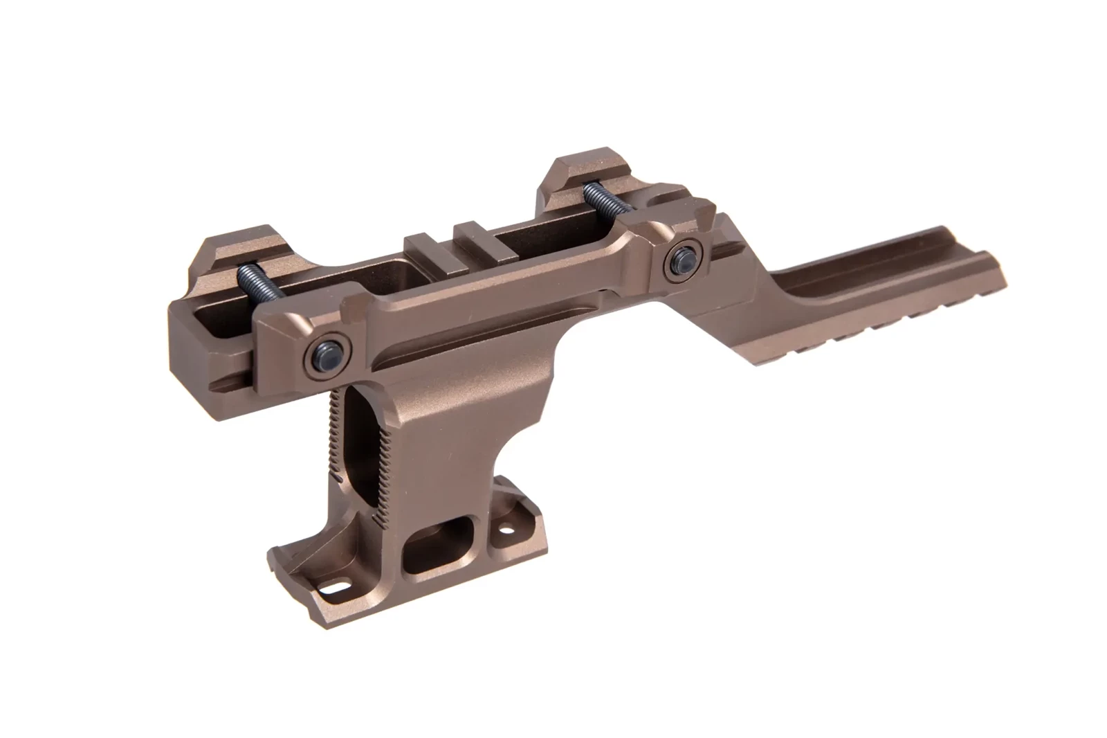 Wykonany z aluminium podwyższony montaż optyki z ramieniem wysięgowym przeznaczonym na montaż modułów laserowych typu PEQ/NGAL