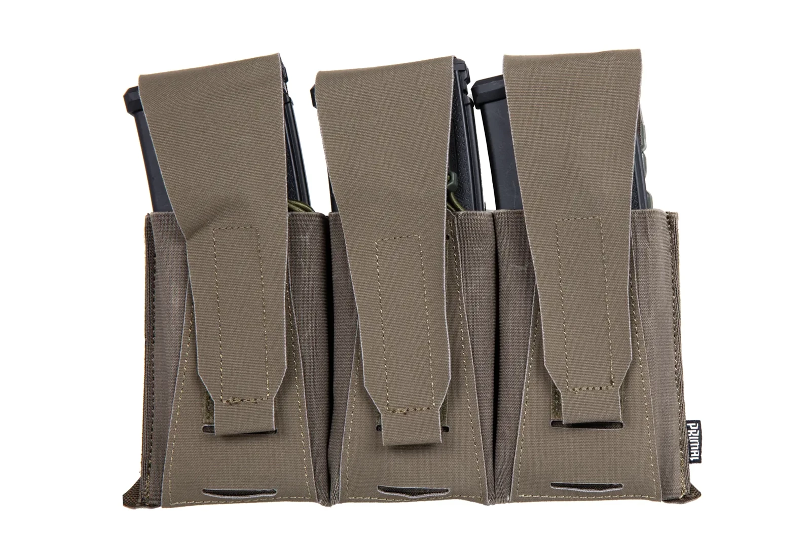 Potrójna ładownica dedykowana do serii kamizelek Plate Carrier Primal Gear, mocowana do kamizelki za pomocą rzepów oraz taśm. Ponadto model został wyposażony w klamry oraz zapięcia pozwalający na użycie modelu jako modułu zastępującego przednia klapę.