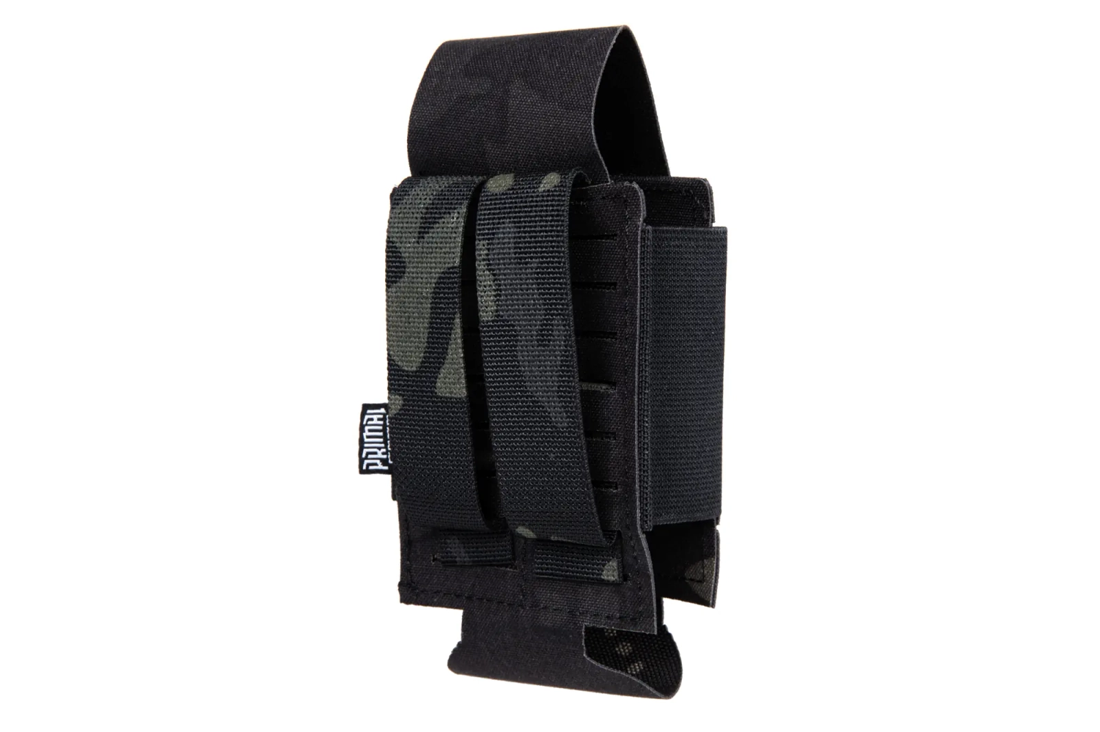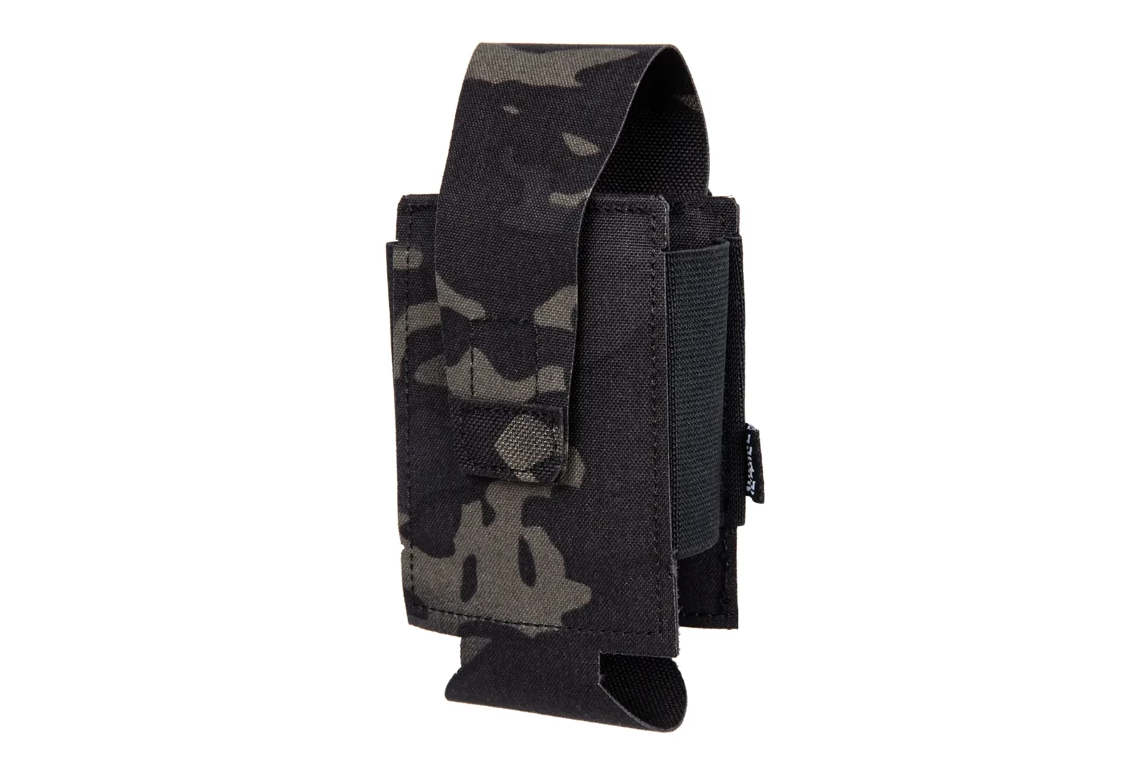 Kieszeń na granat dymny wykonana z wysokiej jakości materiału. Elastyczne boki zasobnika oraz głębokie dno i klapa zapinana na rzep pozwala na dopasowanie kieszeni do różnych granatów różnych rozmiarów lub pojemnika z gazem.