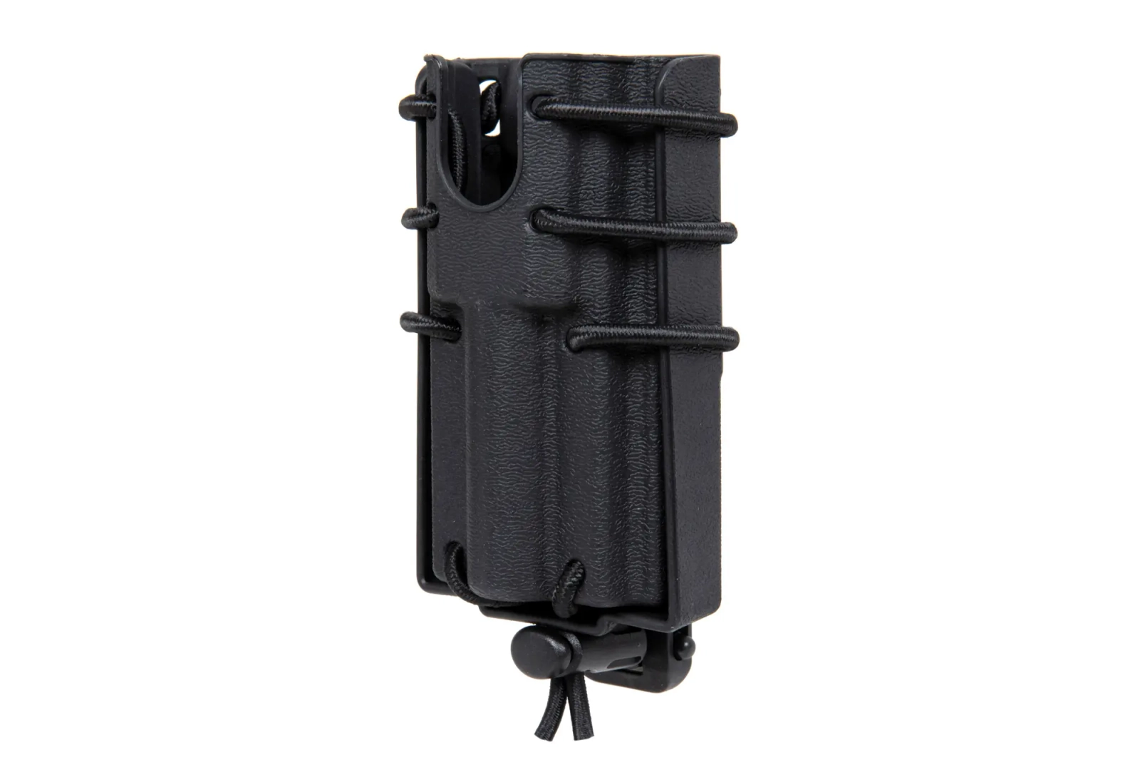 Wykonana z wytrzymałego tworzywa sztucznego kieszeń typu fast mieszcząca stazę taktyczną typu CAT. Ładownica wyposażona jest w specjalną elastyczną linkę do regulacji "rozwarcia" kieszeni która lepiej dopasowuje się do zawartości i nie pozwala magazynkom wypaść. Kieszeń zamontować można na pasie o maksymalnej szerokości 45mm a także na oporządzeniu zgodnym z systemem MOLLE.