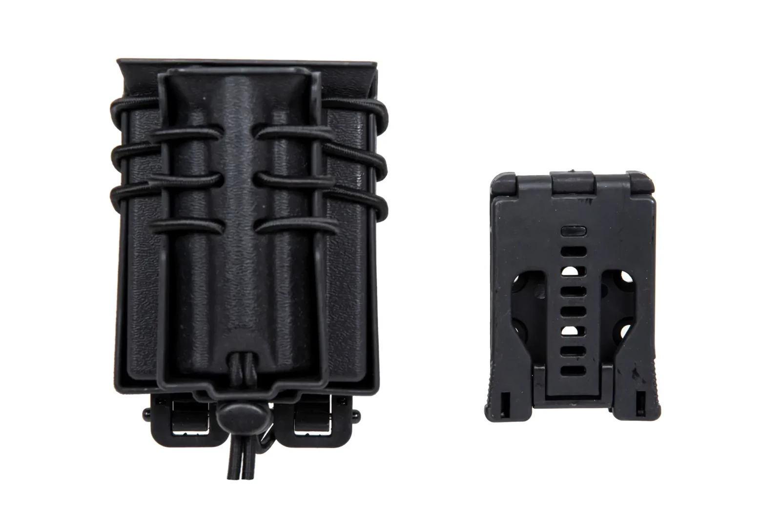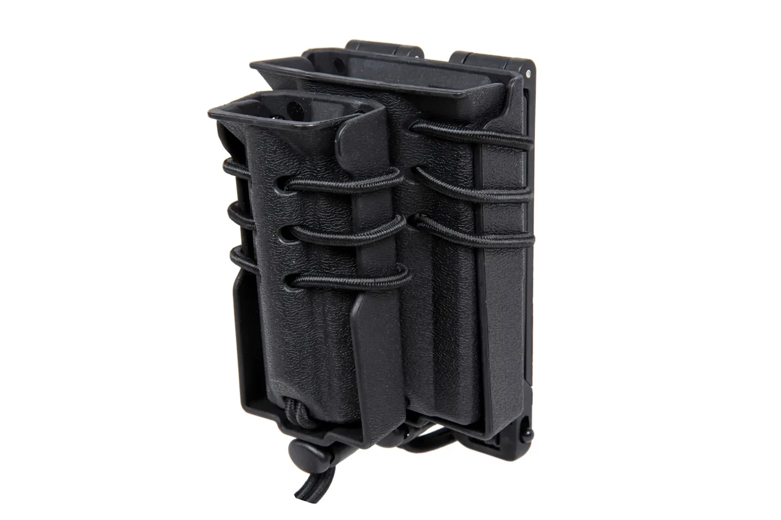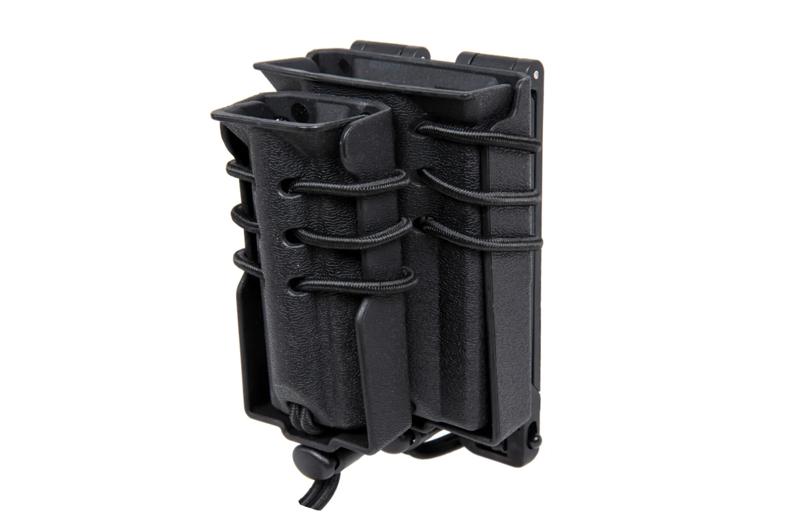 Wykonana z wytrzymałego tworzywa sztucznego ładownica typu fast mieszcząca dwa magazynki, 9mm oraz karabinowe typu M4/M16, AK lub inny, podobnych rozmiarów. Ładownica wyposażona jest w specjalną elastyczną linkę do regulacji "rozwarcia" ładownicy która lepiej dopasowuje się do zawartości i nie pozwala magazynkom wypaść. Ładownicę zamontować można na pasie o maksymalnej szerokości 45mm a także na oporządzeniu zgodnym z systemem MOLLE.