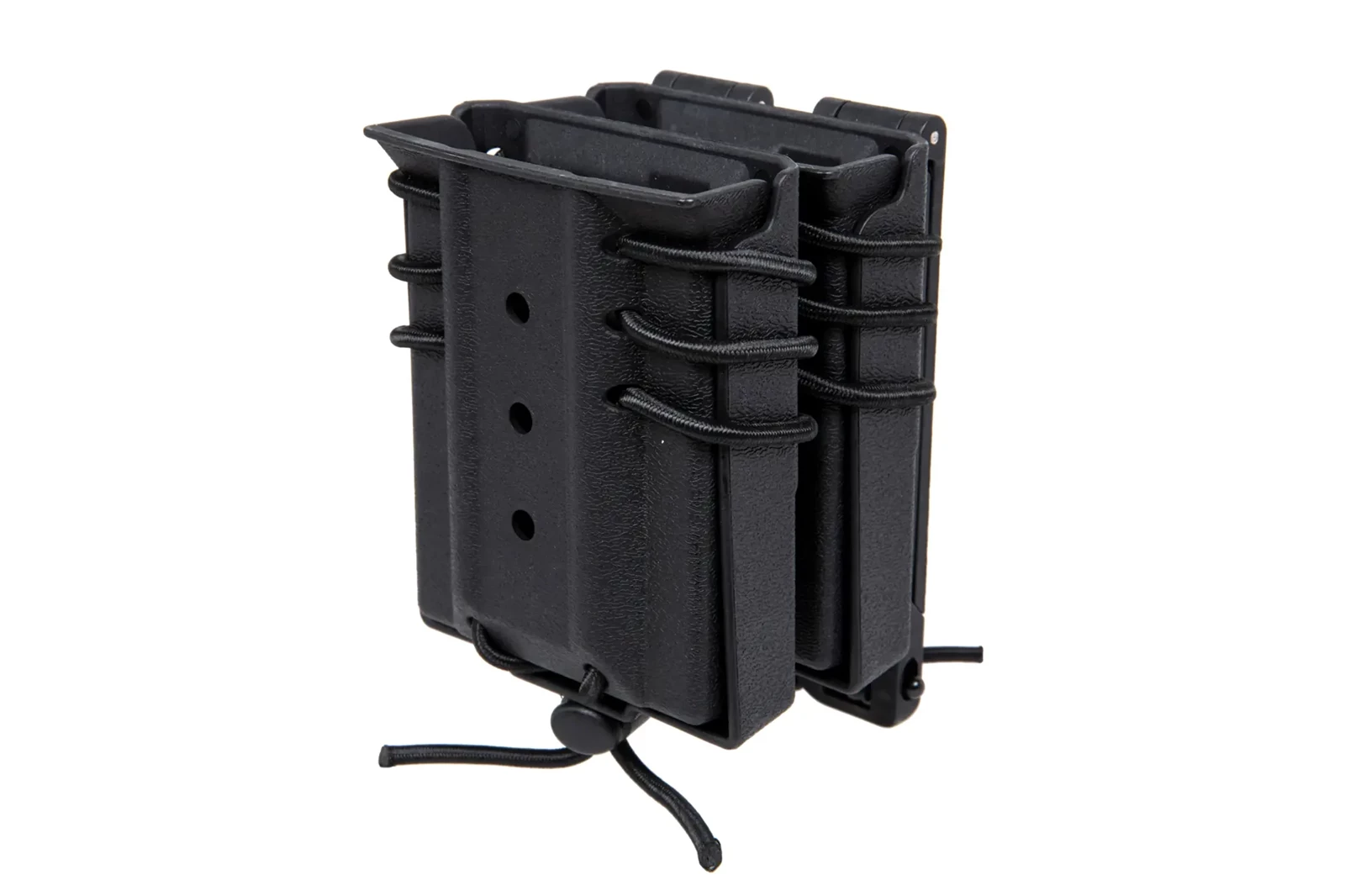 Wykonana z wytrzymałego tworzywa sztucznego ładownica typu fast mieszcząca dwa magazynki karabinowe typu M4/M16, AK lub inny, podobnych rozmiarów. Ładownica wyposażona jest w specjalną elastyczną linkę do regulacji "rozwarcia" ładownicy która lepiej dopasowuje się do zawartości i nie pozwala magazynkom wypaść. Ładownicę zamontować można na pasie o maksymalnej szerokości 45mm a także na oporządzeniu zgodnym z systemem MOLLE.