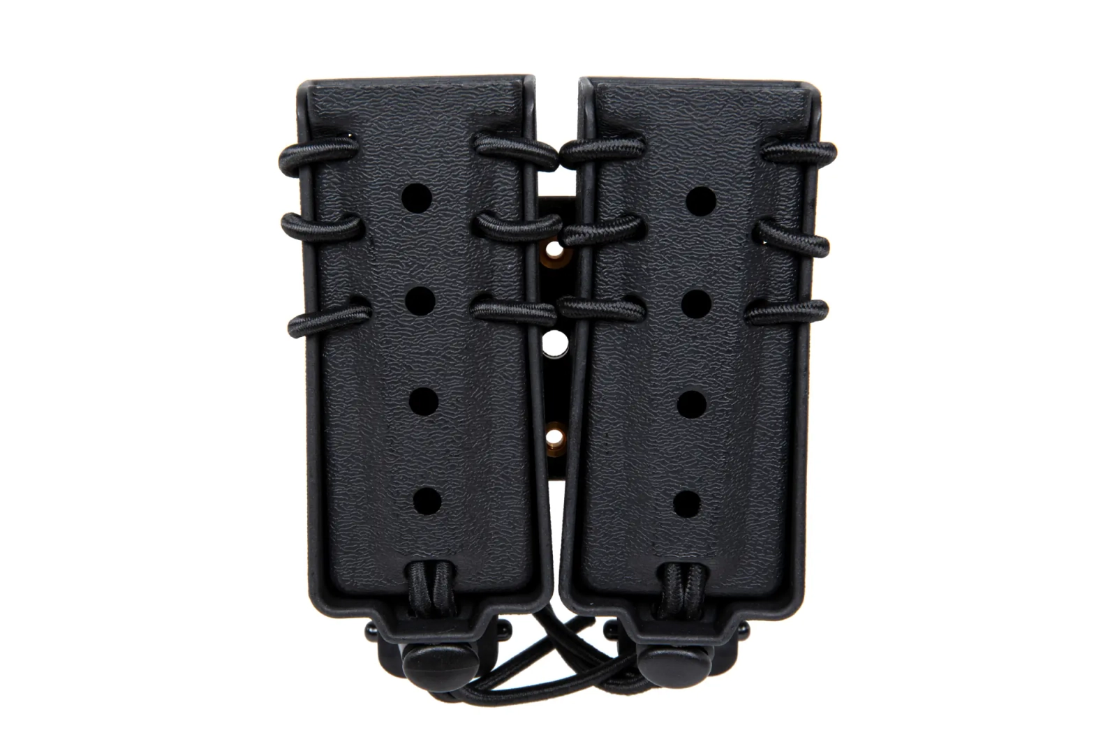 Wykonana z wytrzymałego tworzywa sztucznego ładownica typu fast mieszcząca dwa magazynki 9mm. Ładownica wyposażona jest w specjalną elastyczną linkę do regulacji "rozwarcia" ładownicy która lepiej dopasowuje się do zawartości i nie pozwala magazynkom wypaść. Ładownicę zamontować można na pasie o maksymalnej szerokości 45mm a także na oporządzeniu zgodnym z systemem MOLLE.
