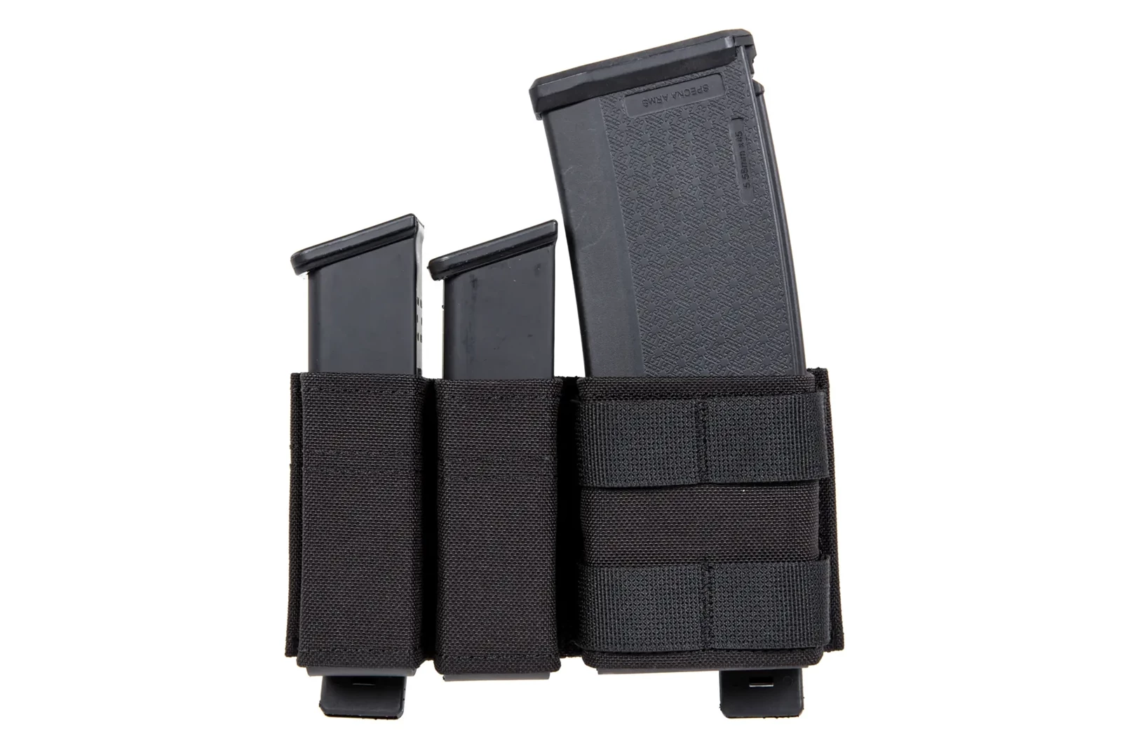 Wytrzymała i lekka ładownica na dwa rodzaje magazynków z możliwością montażu w systemie Molle.