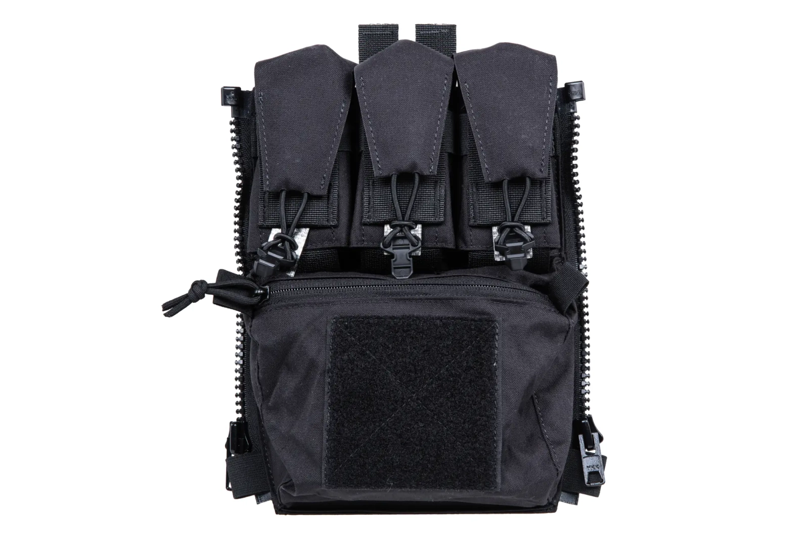Praktyczny i wytrzymały panel szturmowy posiada trzy ładownice na magazynki pistoletowe. Dodatkowo panel posiada dolną kieszeń zamykaną na zamek błyskawiczny YKK. Kieszeń jest wyścielona odpornym na wilgoć materiałem. Można w niej przechowywać drobne przedmioty jak portfel, mapa, multitool, opatrunki medyczne. Na przodzie kieszeni znajduje się dodatkowy rzep, na który można naczepić naszywki lub identyfikator