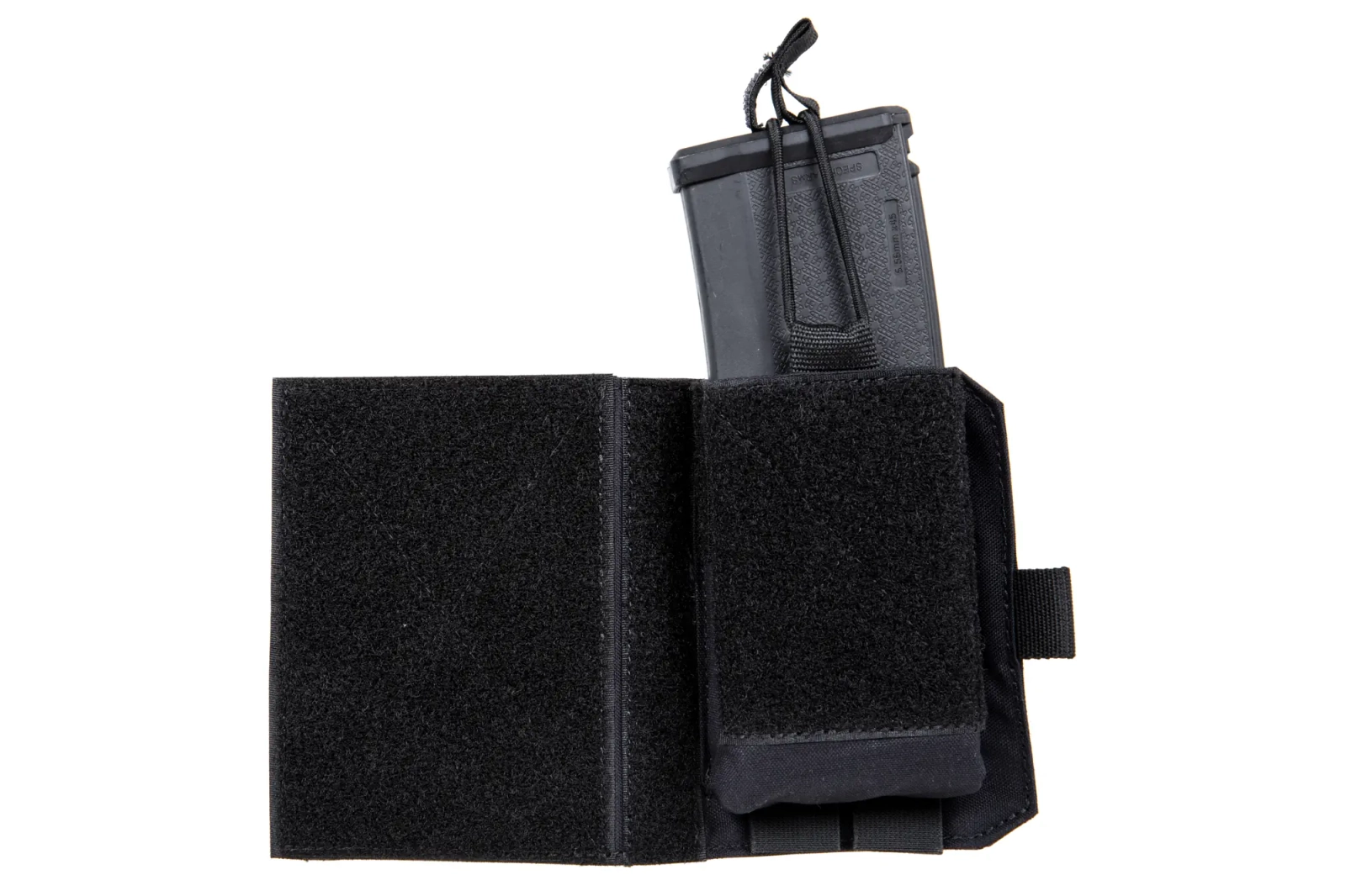 Lekka i wytrzymała ładownica na magazynek karabinowy posiada z tyłu rzepy, którymi można zamontować produkt do kamizelki taktycznej.