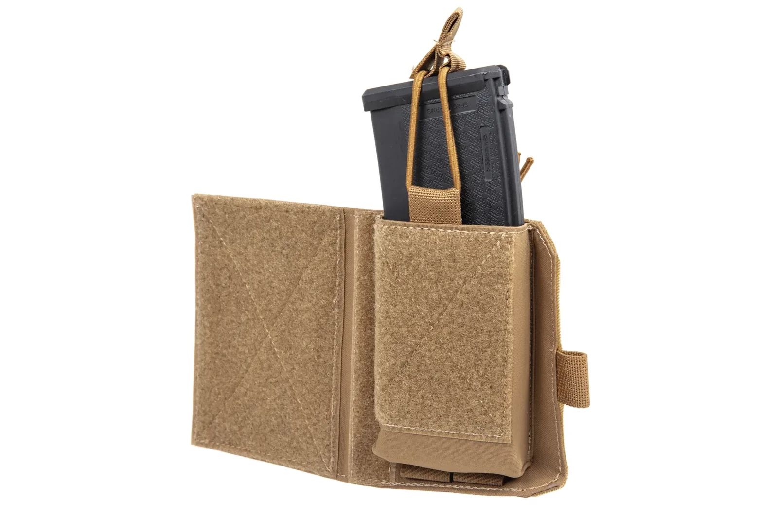 Lekka i wytrzymała ładownica na magazynek karabinowy posiada z tyłu rzepy, którymi można zamontować produkt do kamizelki taktycznej.
