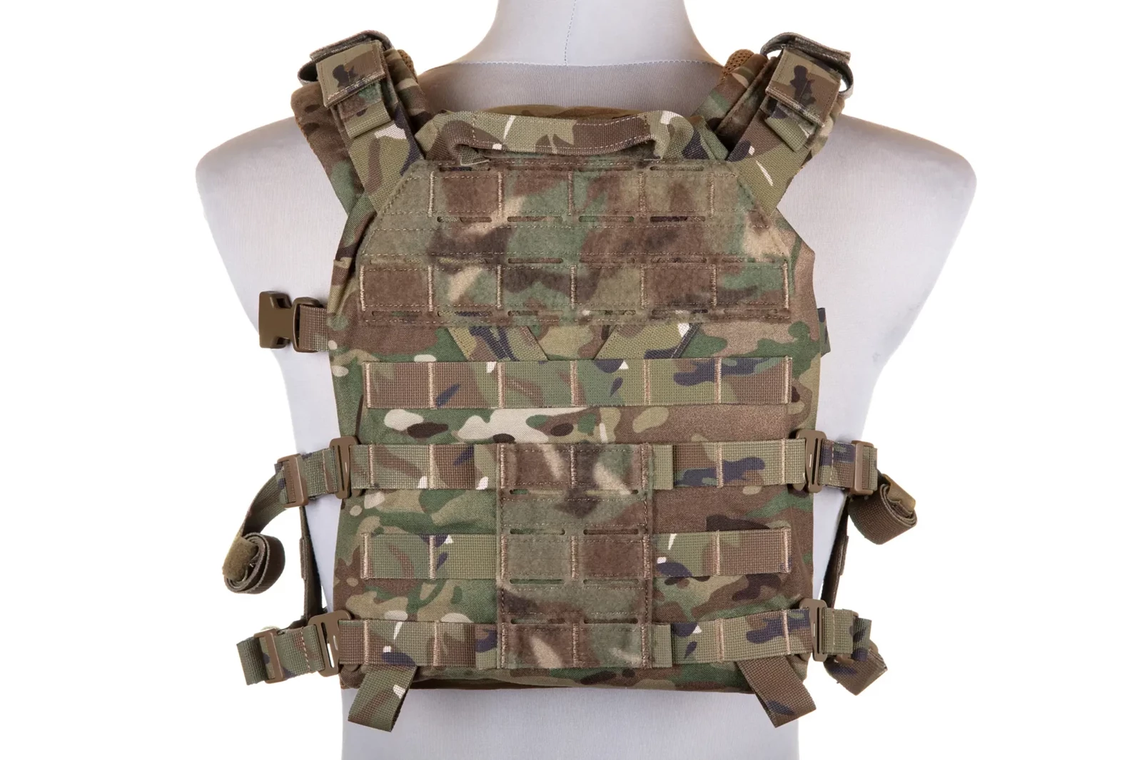 Kamizelka została uszyta z wysokiej jakości Cordury i wyposażona w wysokiej jakości klamry typu QD oraz zamek YKK. Plate carrier składa się z przedniego i tylnego panelu, które są przystosowane do stabilnego przenoszenia twardych wkładów balistycznych SAPI/ESAPI w rozmiarach S, M lub L. Płyty balistyczne wsuwane są do kieszeni od spodu i dodatkowo zabezpieczone na rzep.