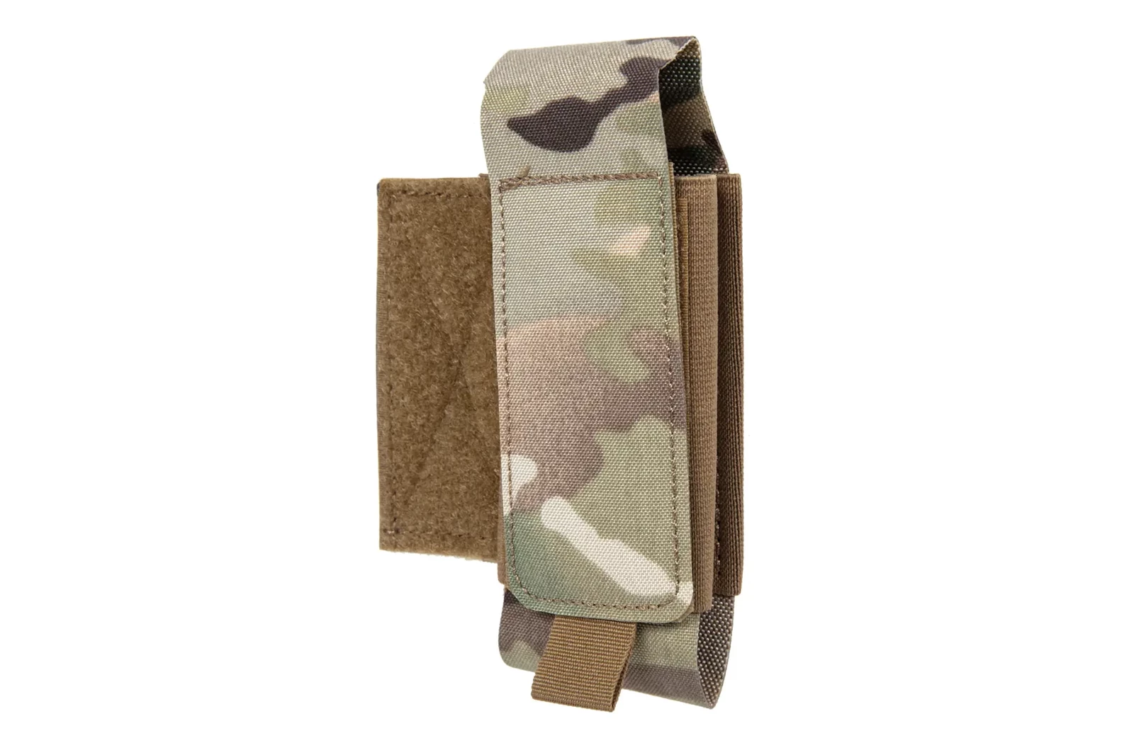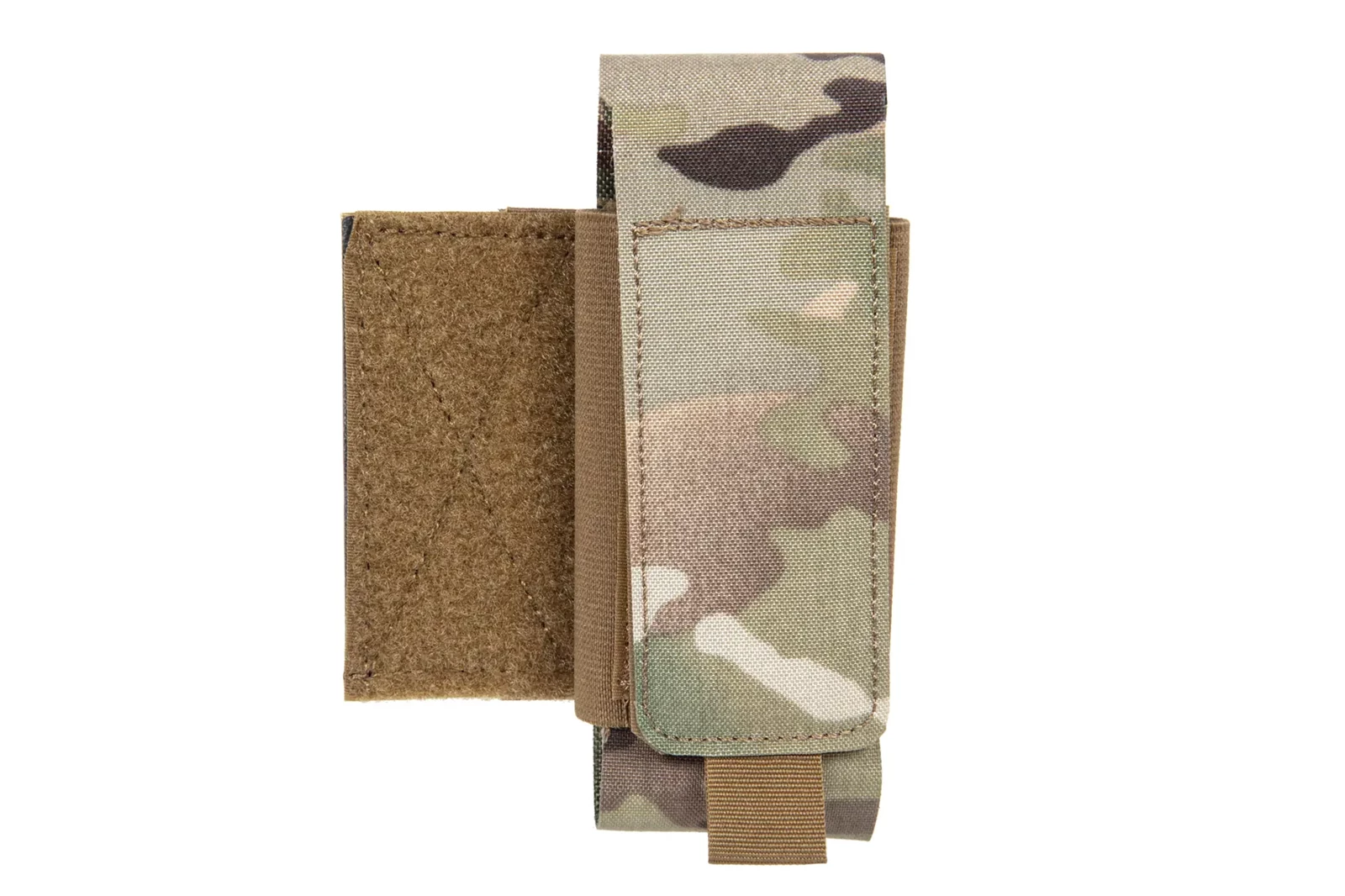 Tył jest wyposażony w rzep, który umożliwi podwieszenie ładownicy na kamizelce taktycznej.