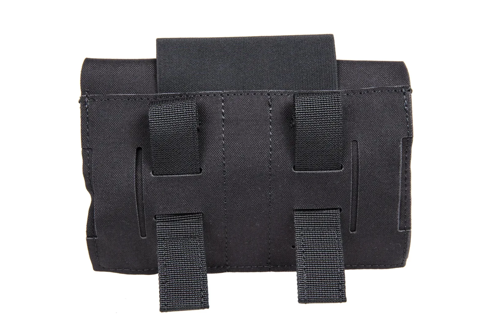 Na klapie apteczki znajduje się rękaw transportowy do stazy lub bandaży natomiast tylna ściana została wyposażona w panel Molle, który umożliwia montaż na pasku o szerokości do 50 mm lub taśmach w systemie Molle.