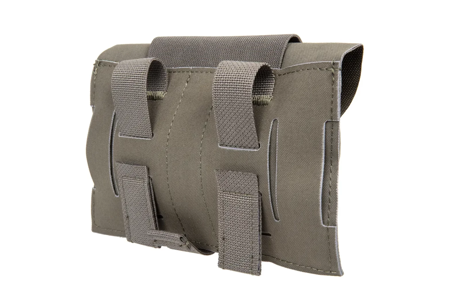 Na klapie apteczki znajduje się rękaw transportowy do stazy lub bandaży natomiast tylna ściana została wyposażona w panel Molle, który umożliwia montaż na pasku o szerokości do 50 mm lub taśmach w systemie Molle.
