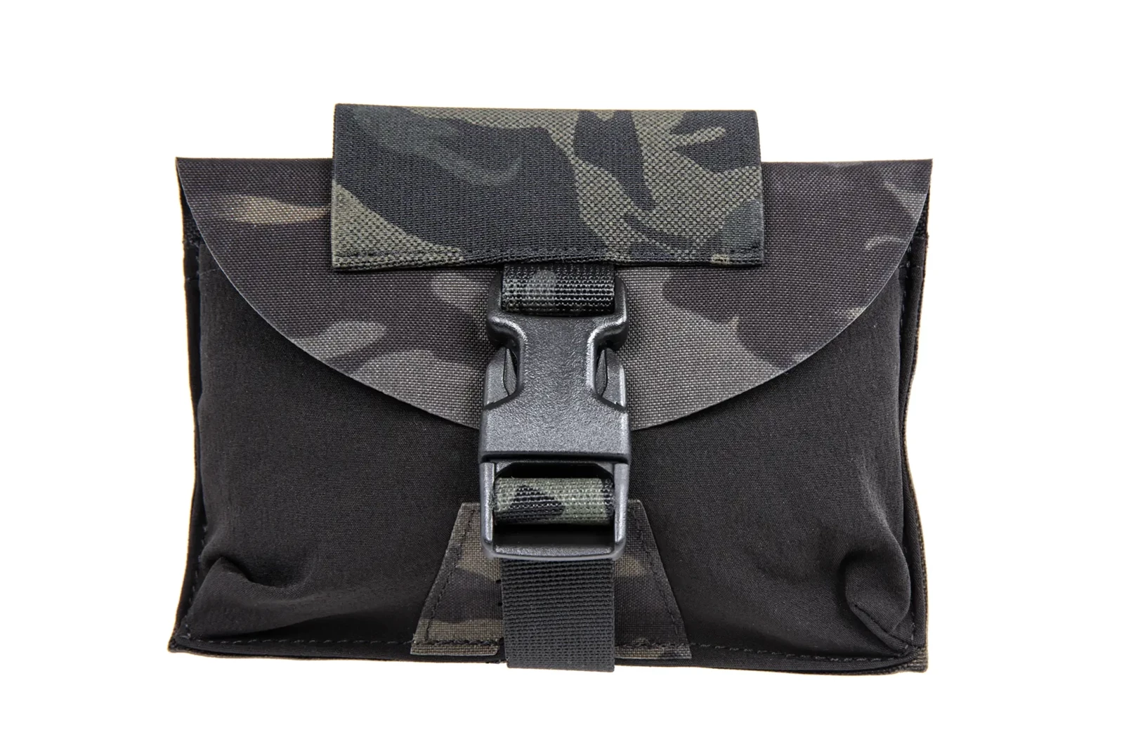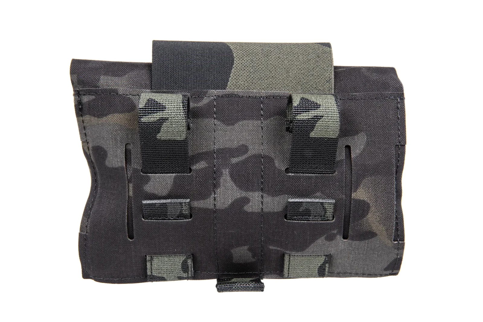 Na klapie apteczki znajduje się rękaw transportowy do stazy lub bandaży natomiast tylna ściana została wyposażona w panel Molle, który umożliwia montaż na pasku o szerokości do 50 mm lub taśmach w systemie Molle.
