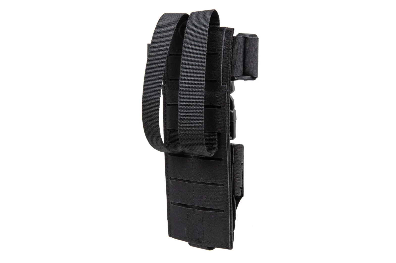 Uszyta z wytrzymałego materiału, lekka ładownica zaprojektowana do transportu radia. Tylna ściana została wyposażona w wykonany metodą Laser-Cut panel molle, który umożliwia zamocowanie ładownicy na pasie lub oporządzeniu taktycznym. Wbudowana klamra i regulowane elastyczne taśmy zabezpieczają radio przed upadkiem.