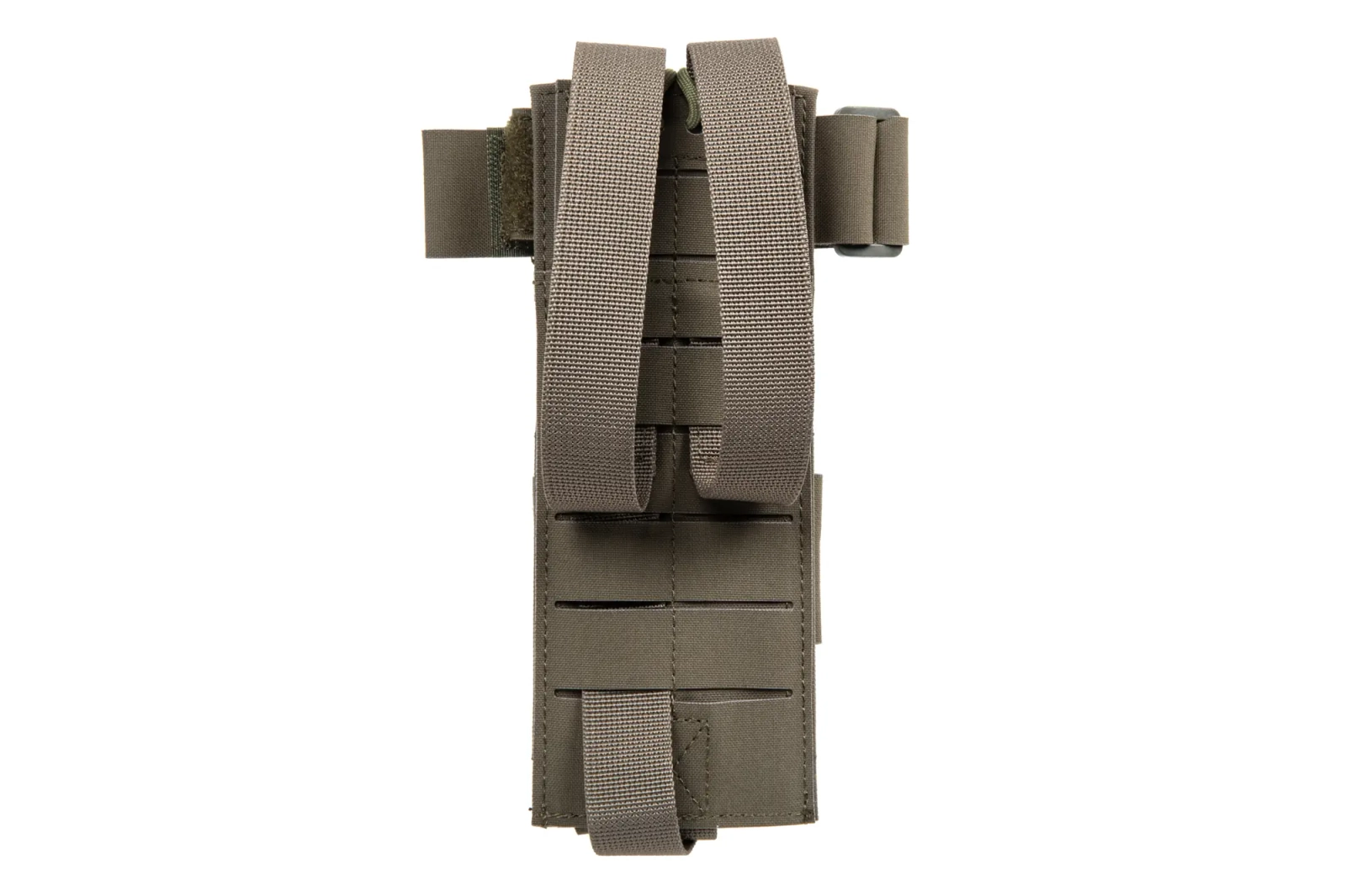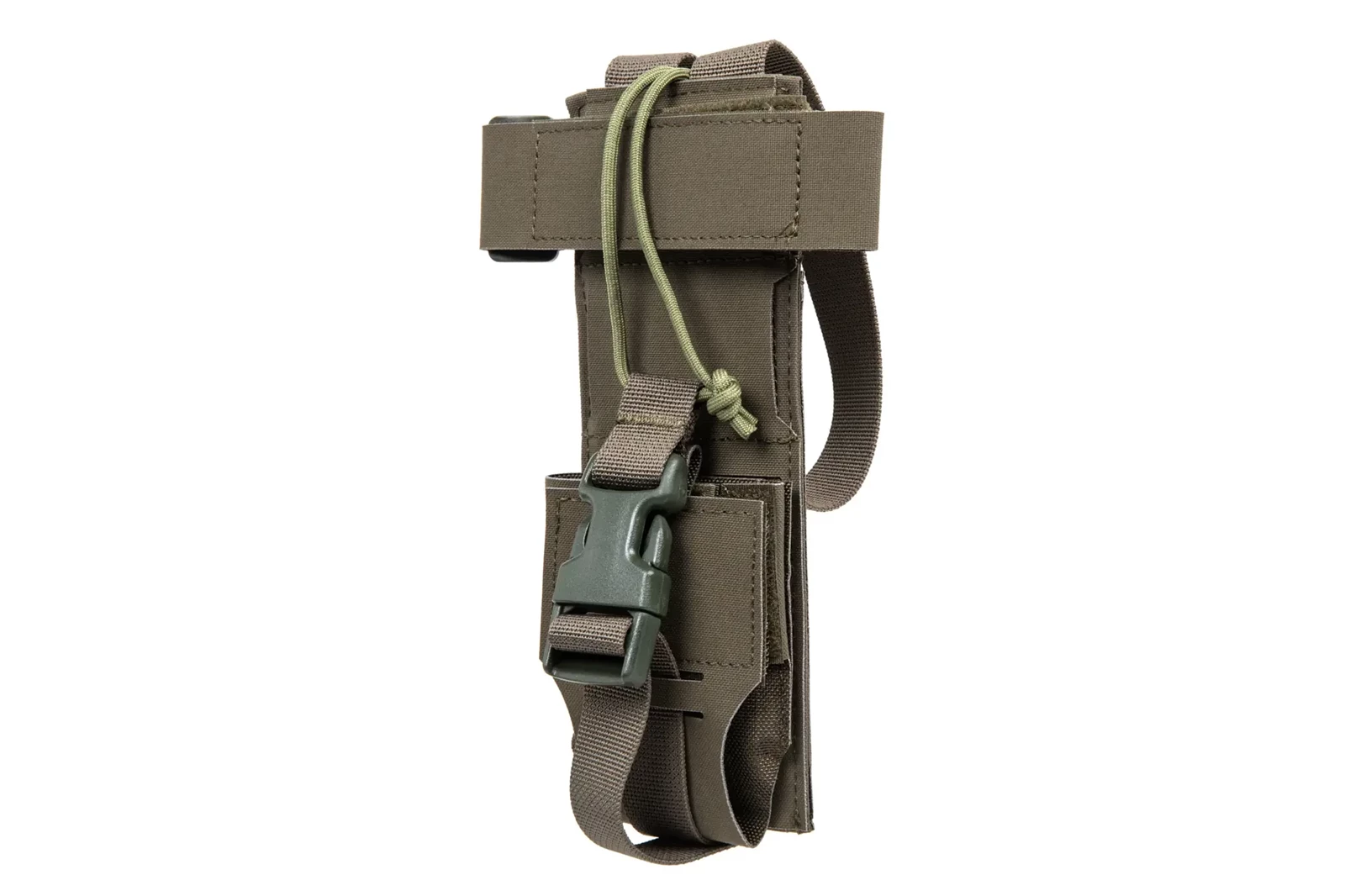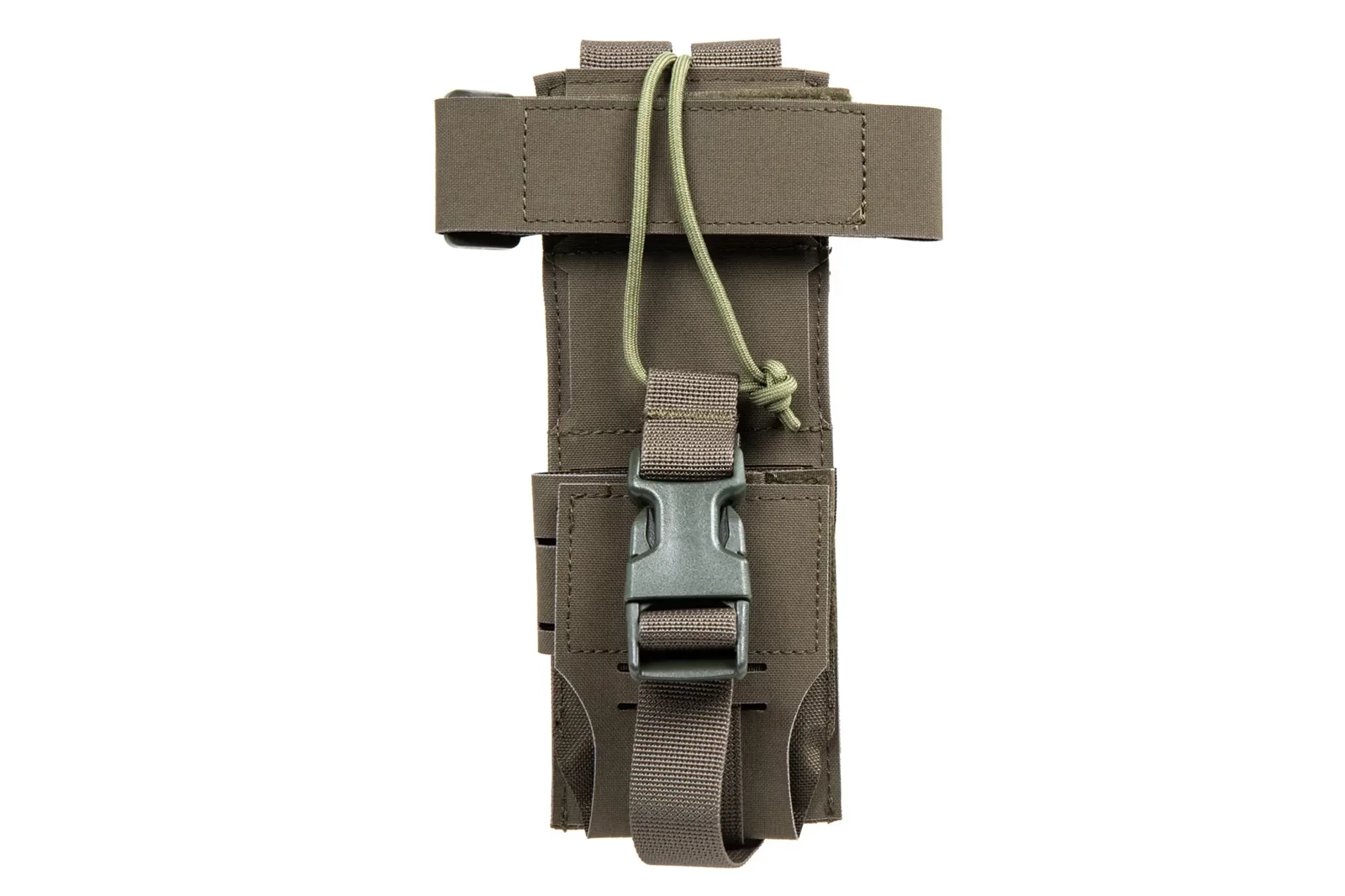 Uszyta z wytrzymałego materiału, lekka ładownica zaprojektowana do transportu radia. Tylna ściana została wyposażona w wykonany metodą Laser-Cut panel molle, który umożliwia zamocowanie ładownicy na pasie lub oporządzeniu taktycznym. Wbudowana klamra i regulowane elastyczne taśmy zabezpieczają radio przed upadkiem.