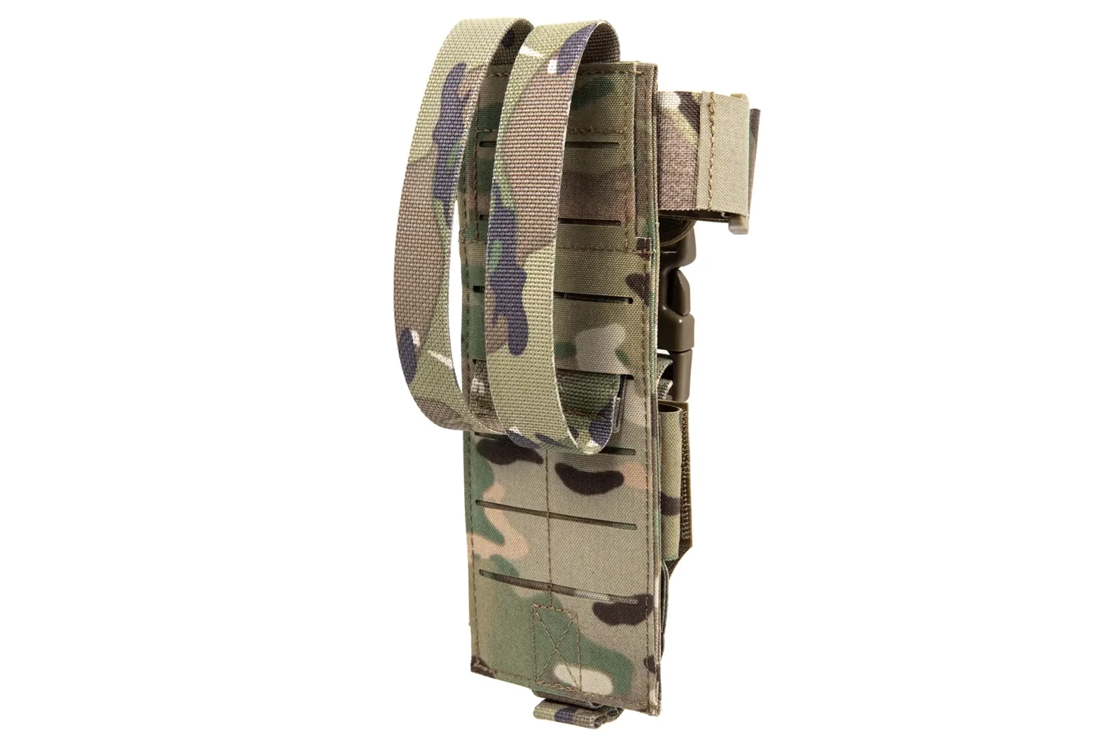 Uszyta z wytrzymałego materiału, lekka ładownica zaprojektowana do transportu radia. Tylna ściana została wyposażona w wykonany metodą Laser-Cut panel molle, który umożliwia zamocowanie ładownicy na pasie lub oporządzeniu taktycznym. Wbudowana klamra i regulowane elastyczne taśmy zabezpieczają radio przed upadkiem.