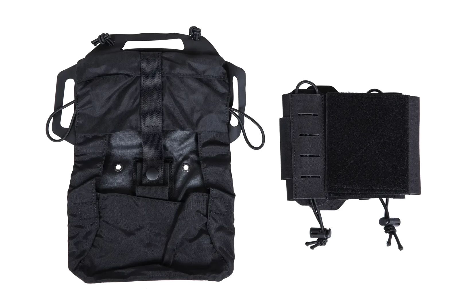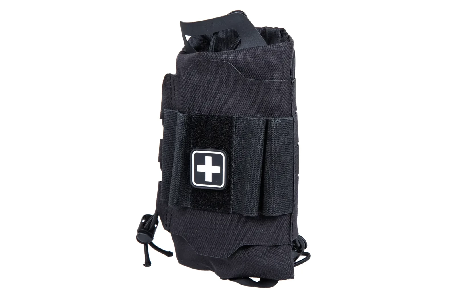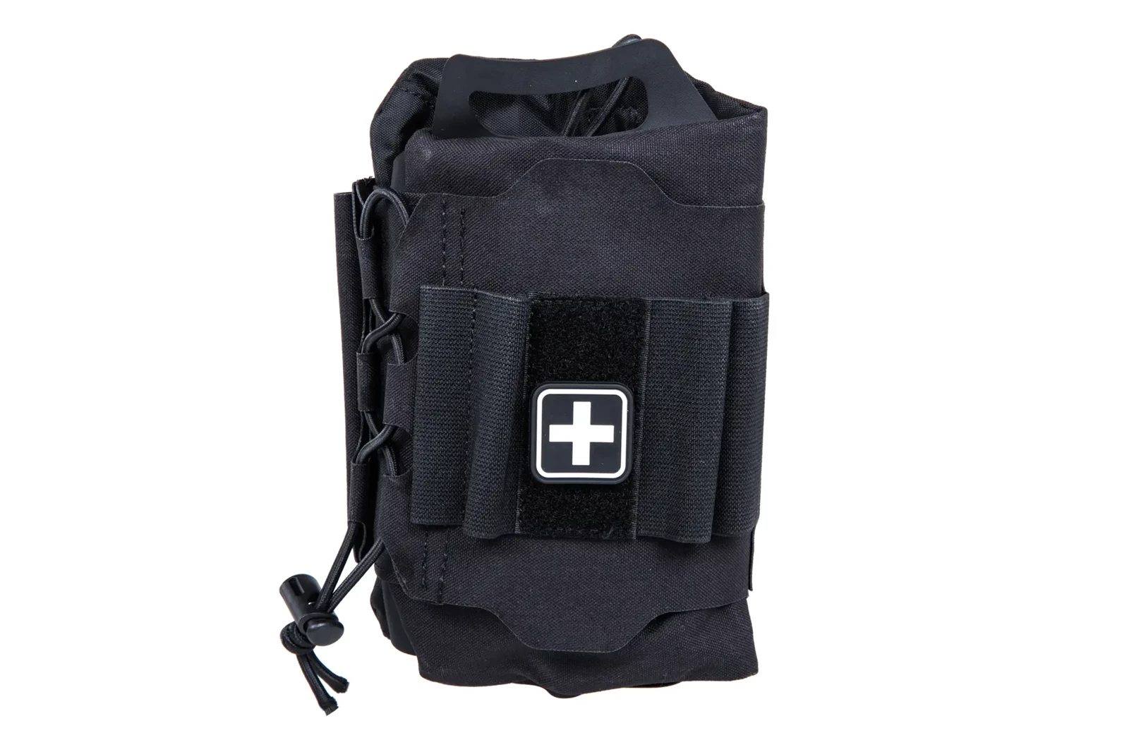 Rękaw transportowy posiada dwa rzepy - przedni z naszywką Medyk, tylni rzep służy do przymocowania całości do kamizelki. Rękaw posiada dodatkowy panel Molle, co pozwala przymocować kolejne elementy wyposażenia np. ładownicę na staze taktyczną.