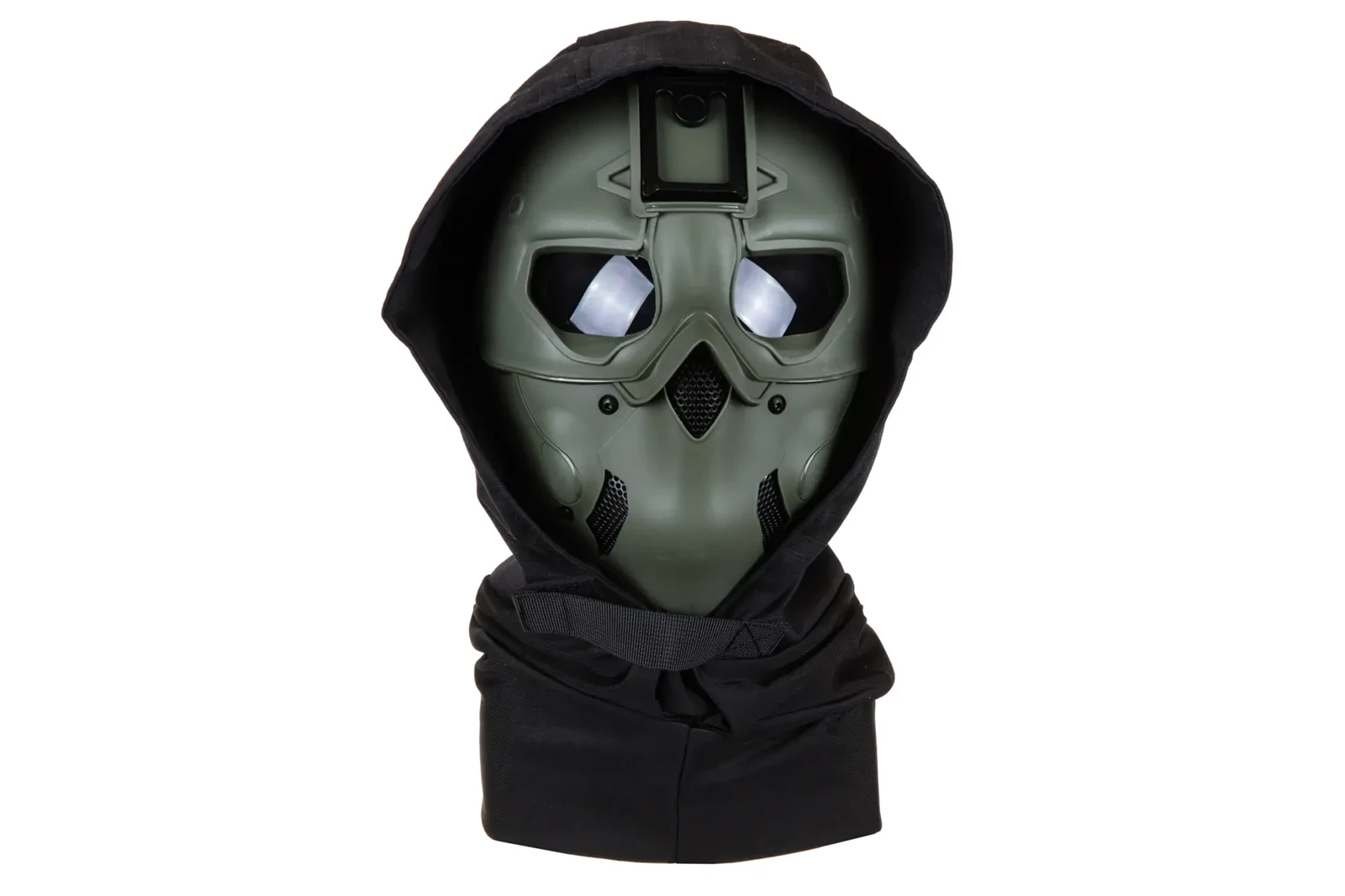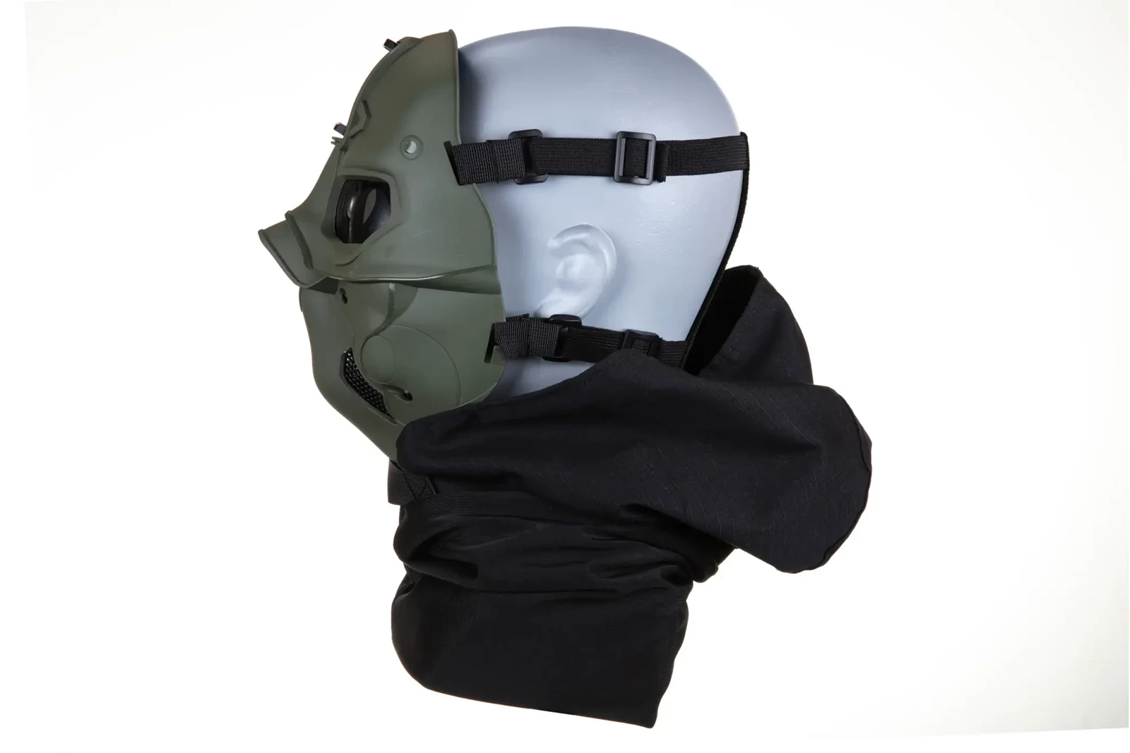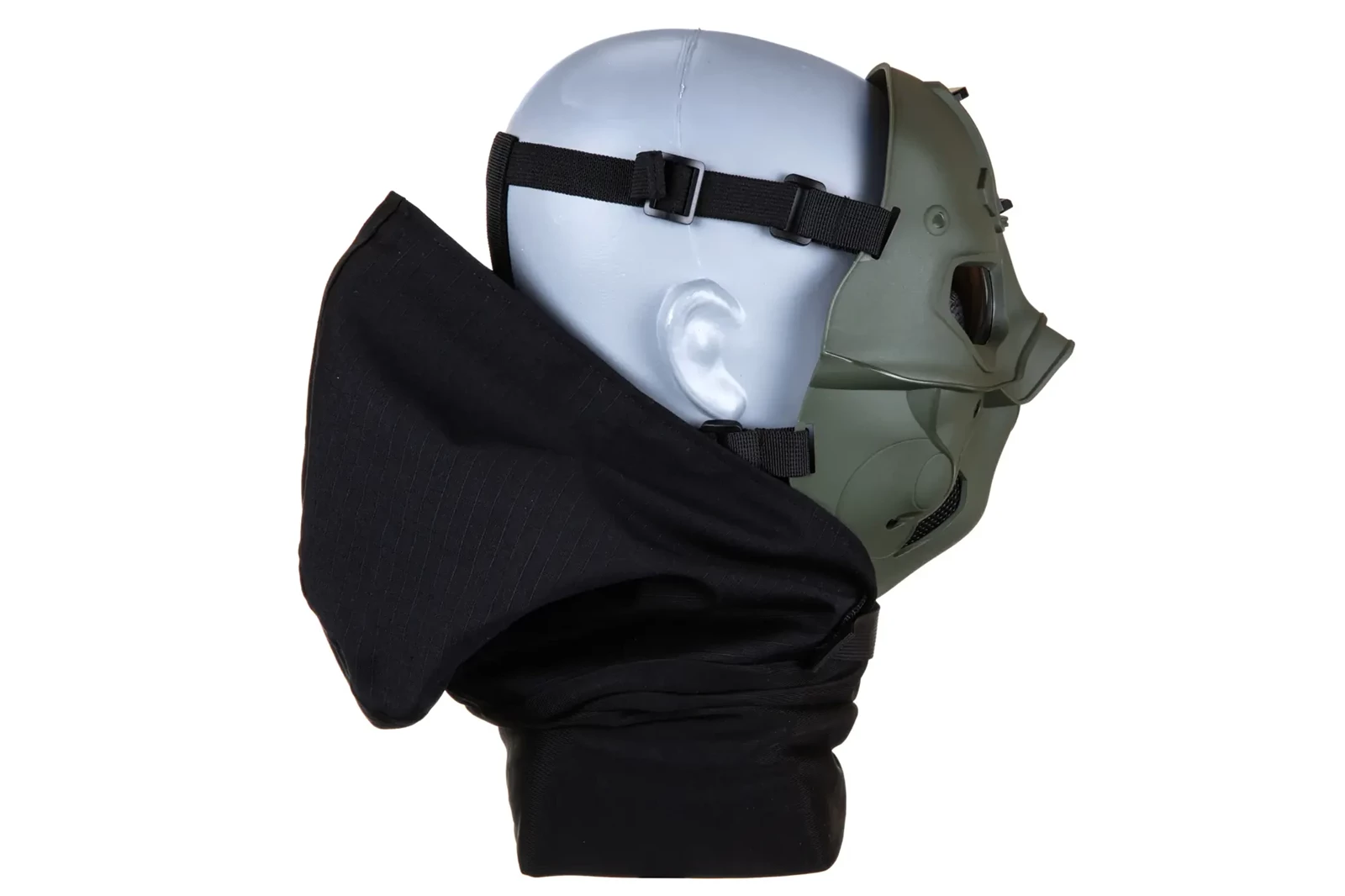 Na płacie czołowym maski został umieszczony montaż pod noktowizor. Całość została wyposażona w pasy z możliwościami regulacji zwiększając komfort noszenia przez użytkownika, przeznaczona do noszenia na głowie, zestaw nie posiada montażu pozwalającego na przypięcie maski do kasku/Hełmu taktycznego. W zestawie znajduje się ścierka z mikrofibry do czyszczenia maski.
