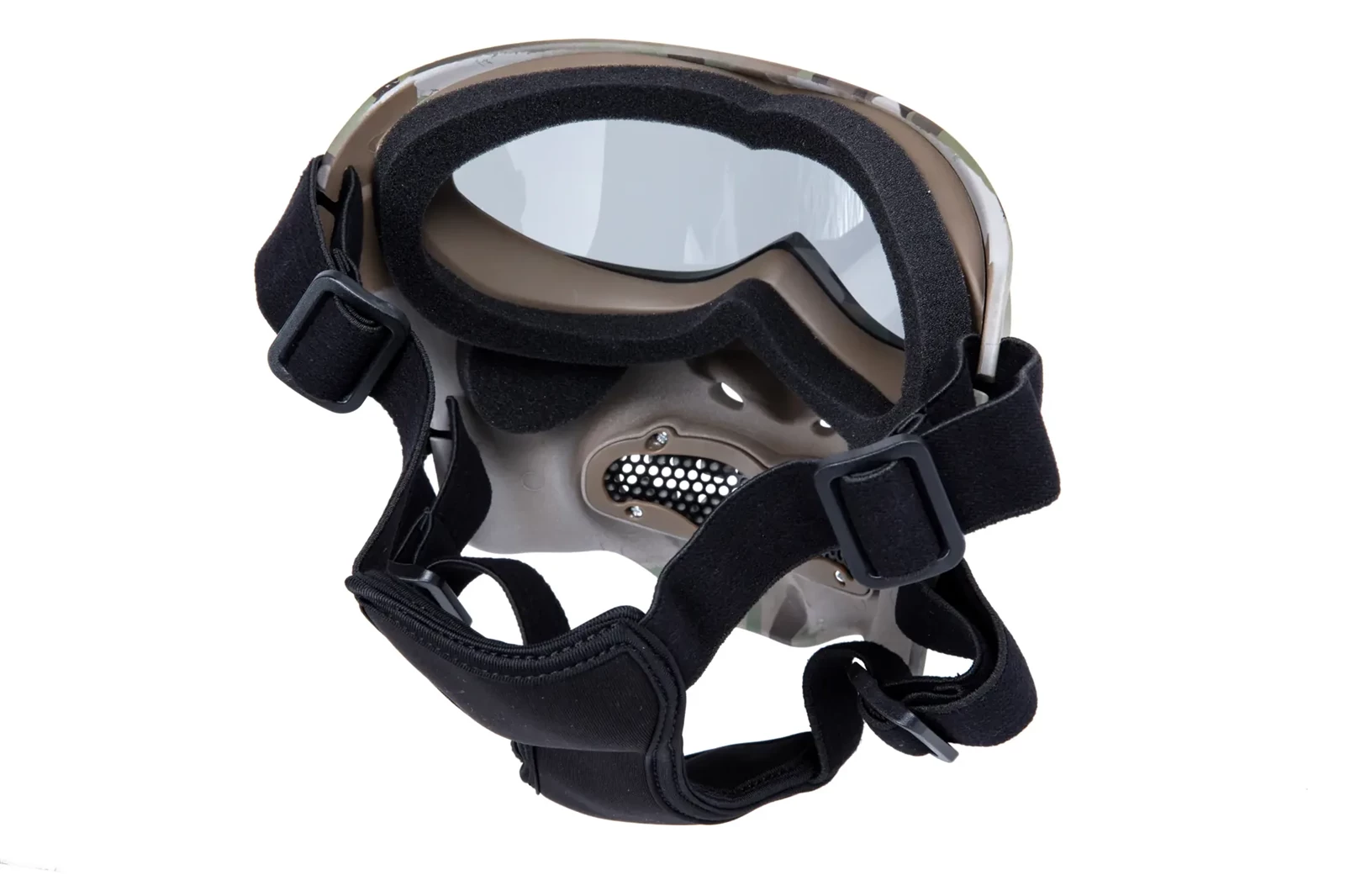 W skład zestawu wchodzą 2 komplety pasków - jeden zestaw pozwala na doczepienie maski do hełmu/kasku taktycznego, drugi zaś pozwala na noszenie maski na głowie.