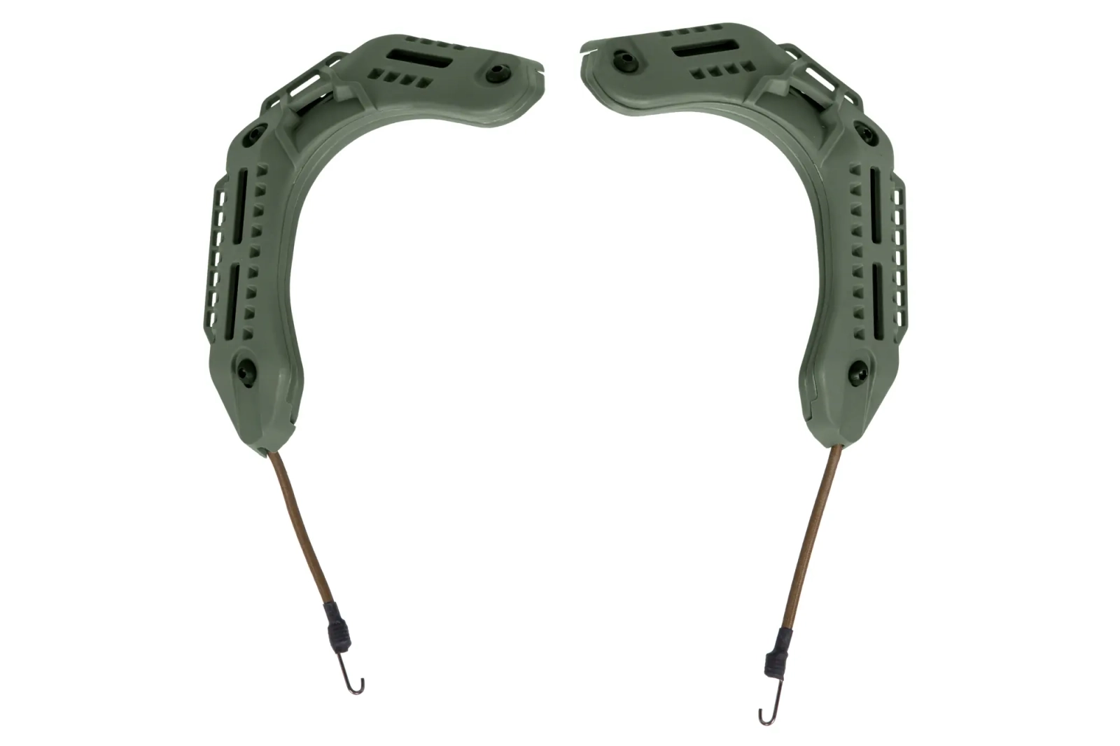 Zestaw szyn montażowych przeznaczonych do hełmów typu MK umożliwiający montaż dodatkowego oprzyrządowania. Moduły montażowe zaopatrzone są w elastyczne linki służące jako odciągi do montażu systemu NVG.