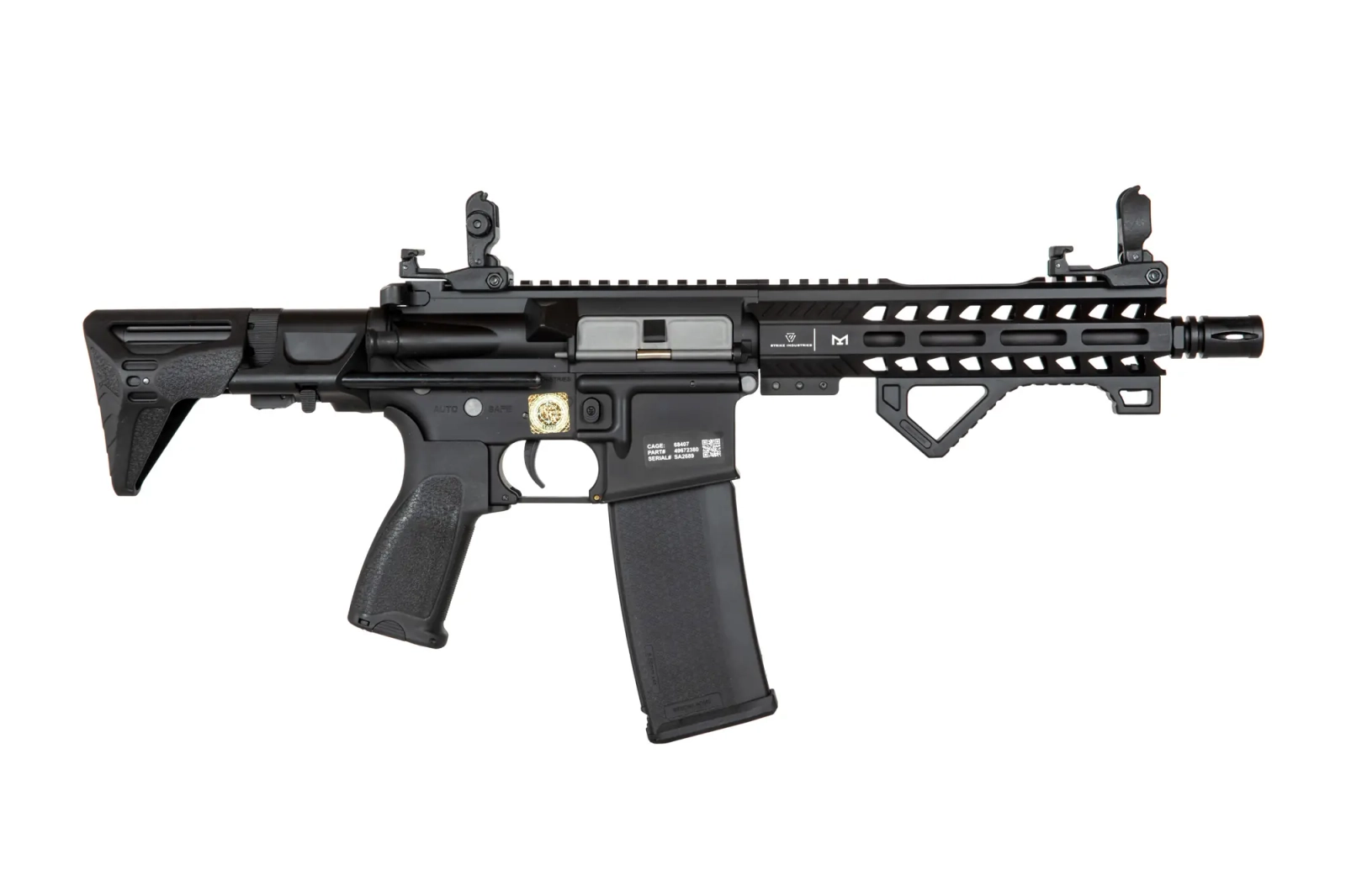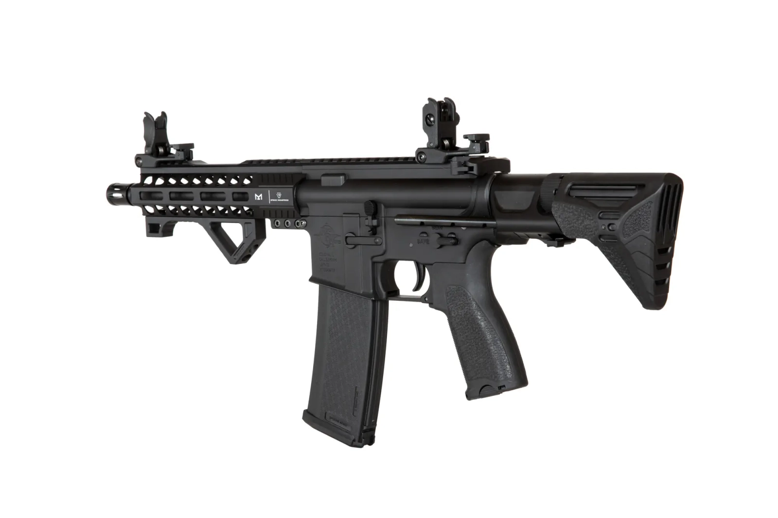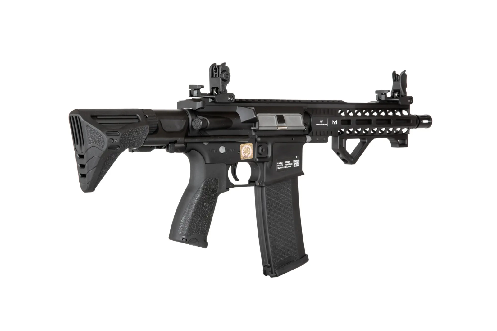 Replika karabinka SA-E17 wyposażona jest w frontową szynę w systemie montażowym M-LOK wyprodukowana na licencji firmy Strike Industries. Pod szyną zamontowano wygodny, kątowy chwyt taktyczny ułatwiający operowanie repliką. Lufa zakończona jest standardowym urządzeniem wylotowym. Na grzbietowej szynie RIS zamontowano składane przyrządy celownicze.