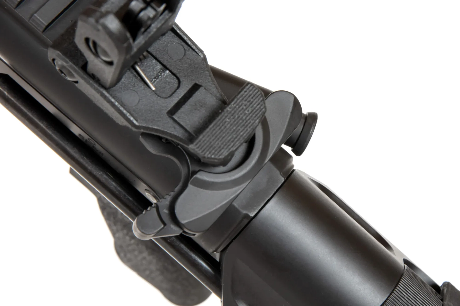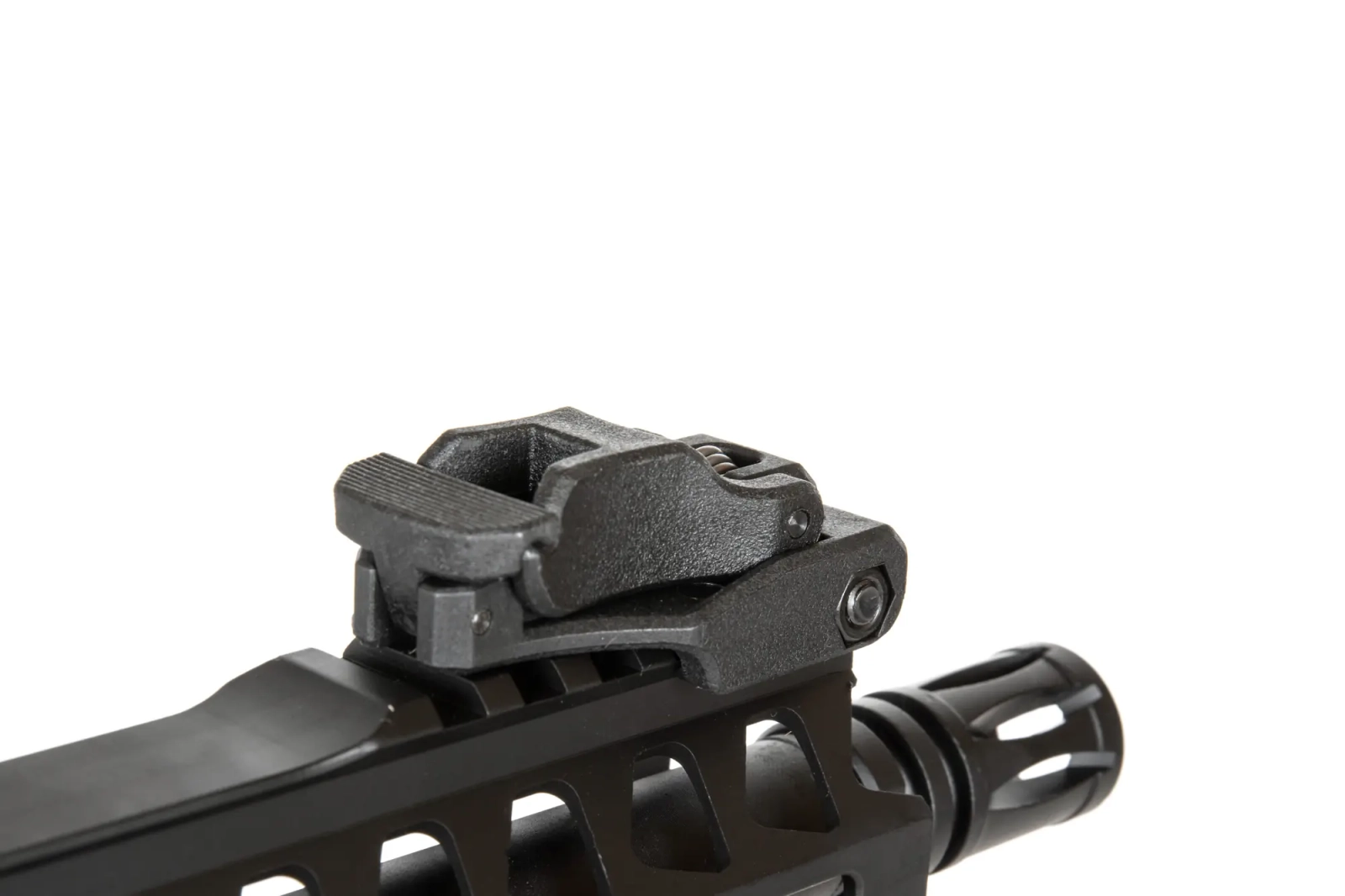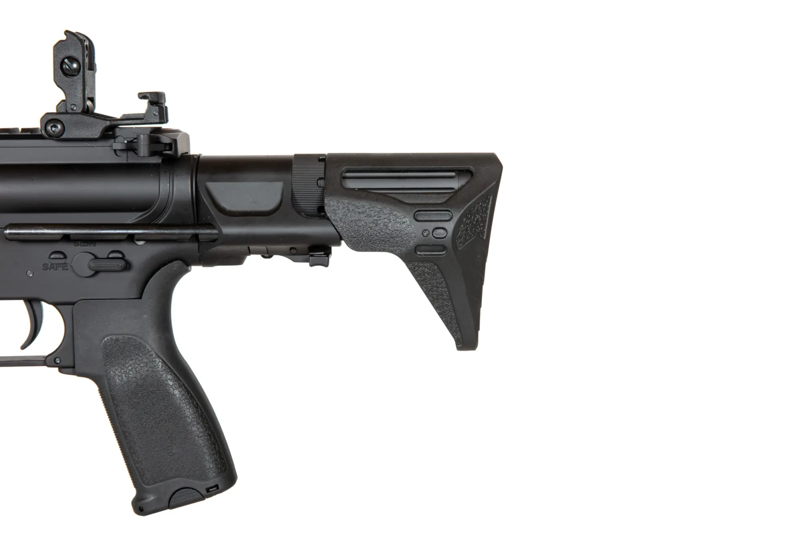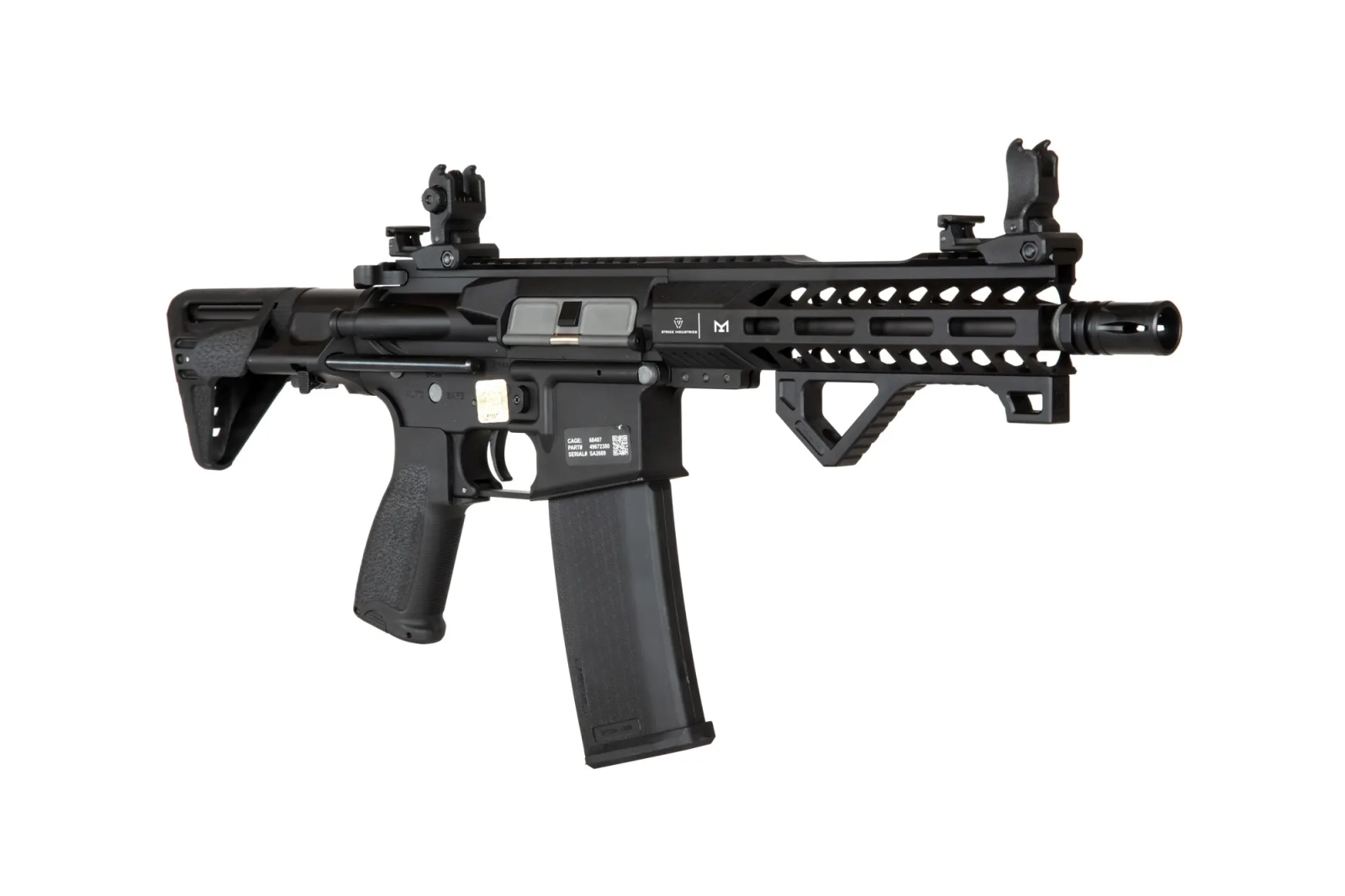 Replika karabinka SA-E17 wyposażona jest w frontową szynę w systemie montażowym M-LOK wyprodukowana na licencji firmy Strike Industries. Pod szyną zamontowano wygodny, kątowy chwyt taktyczny ułatwiający operowanie repliką. Lufa zakończona jest standardowym urządzeniem wylotowym. Na grzbietowej szynie RIS zamontowano składane przyrządy celownicze.