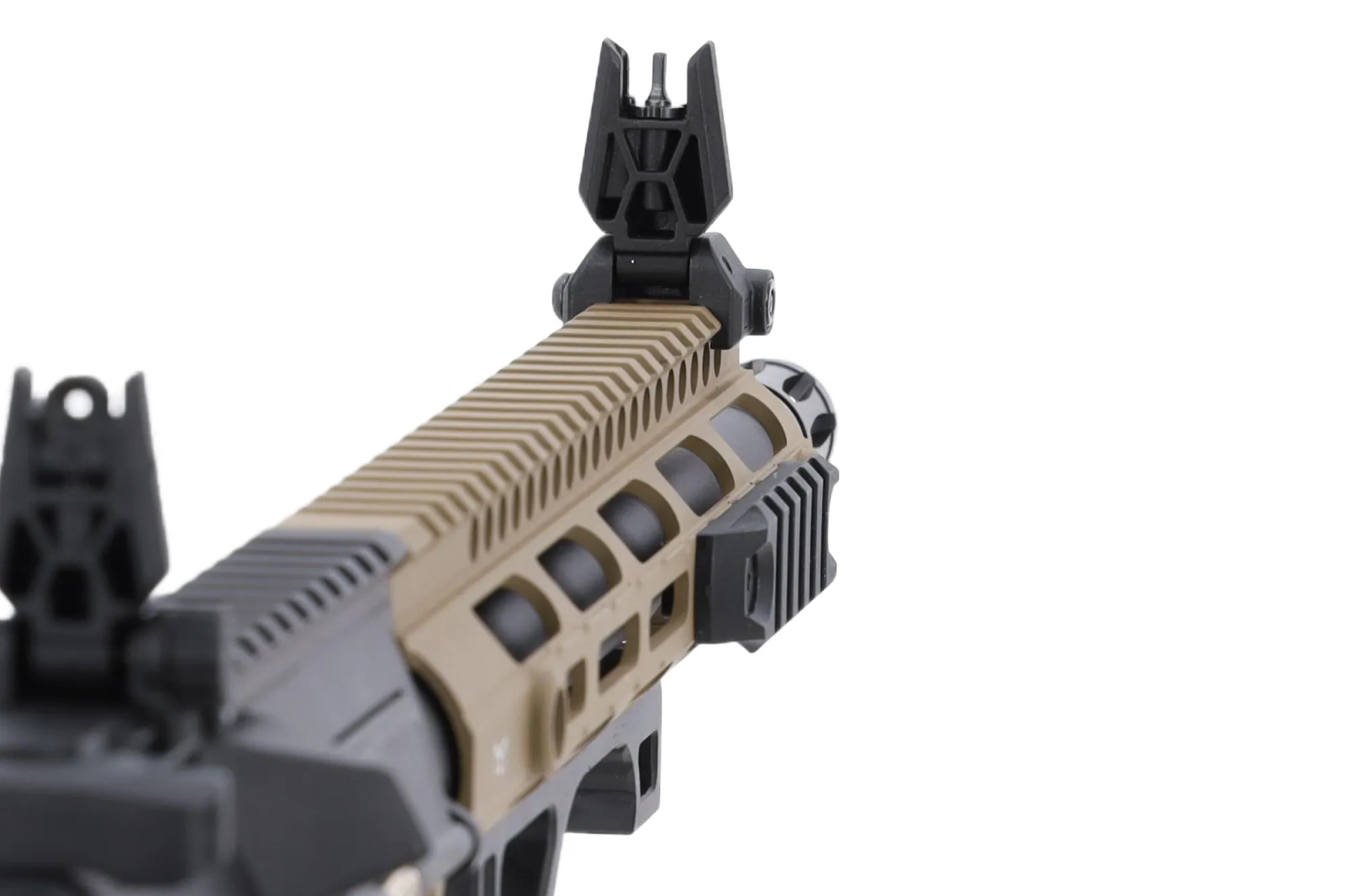 Replika wyposażona jest we front w systemie montażowym M-LOK na którym montować można różnej maści akcesoria taktyczne: latarki, chwyty, wskaźniki laserowe czy celowniki optyczne. Na grzbiecie repliki umieszczono także składane przyrządy celownicze oraz szynę RIS.