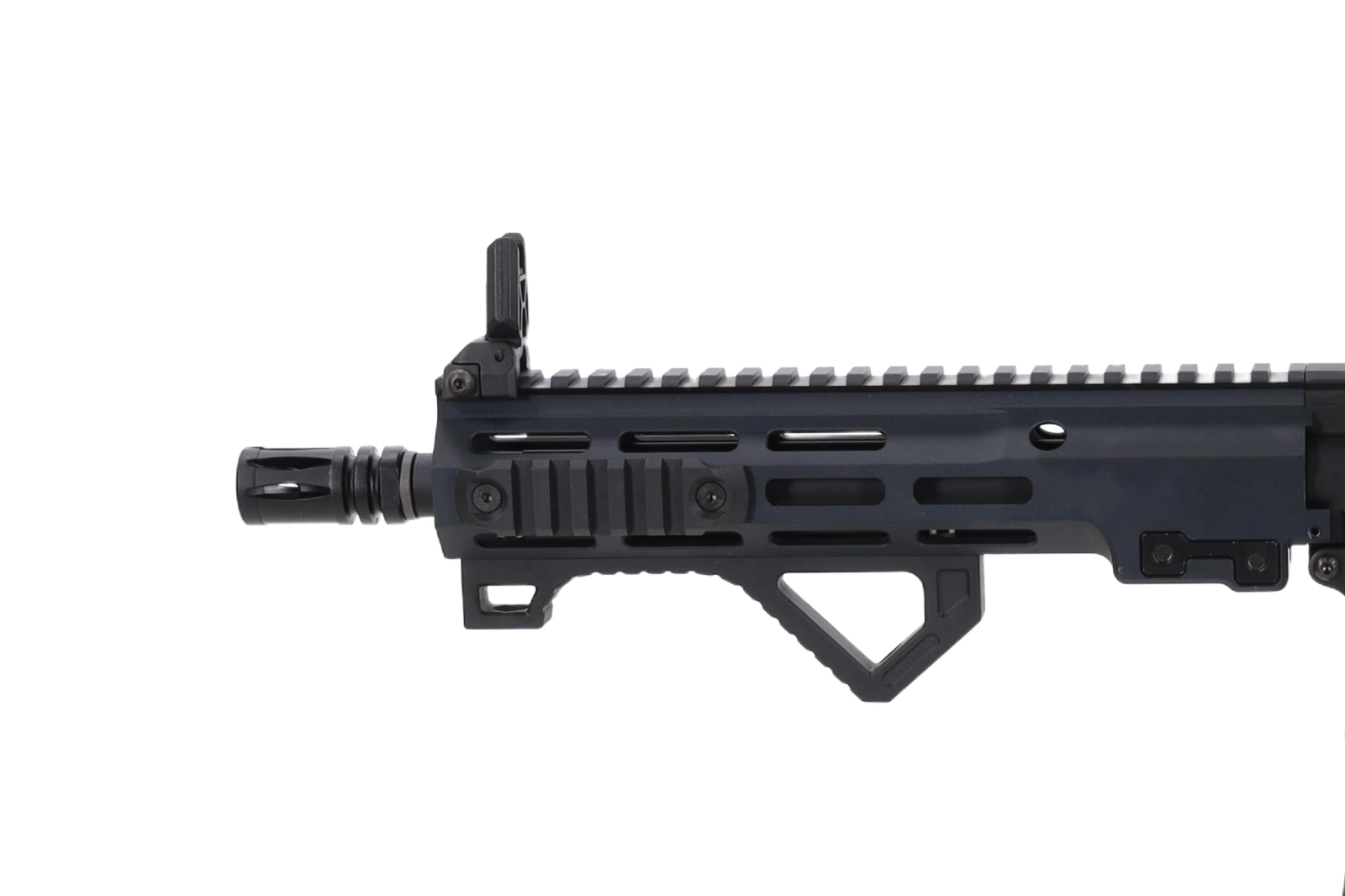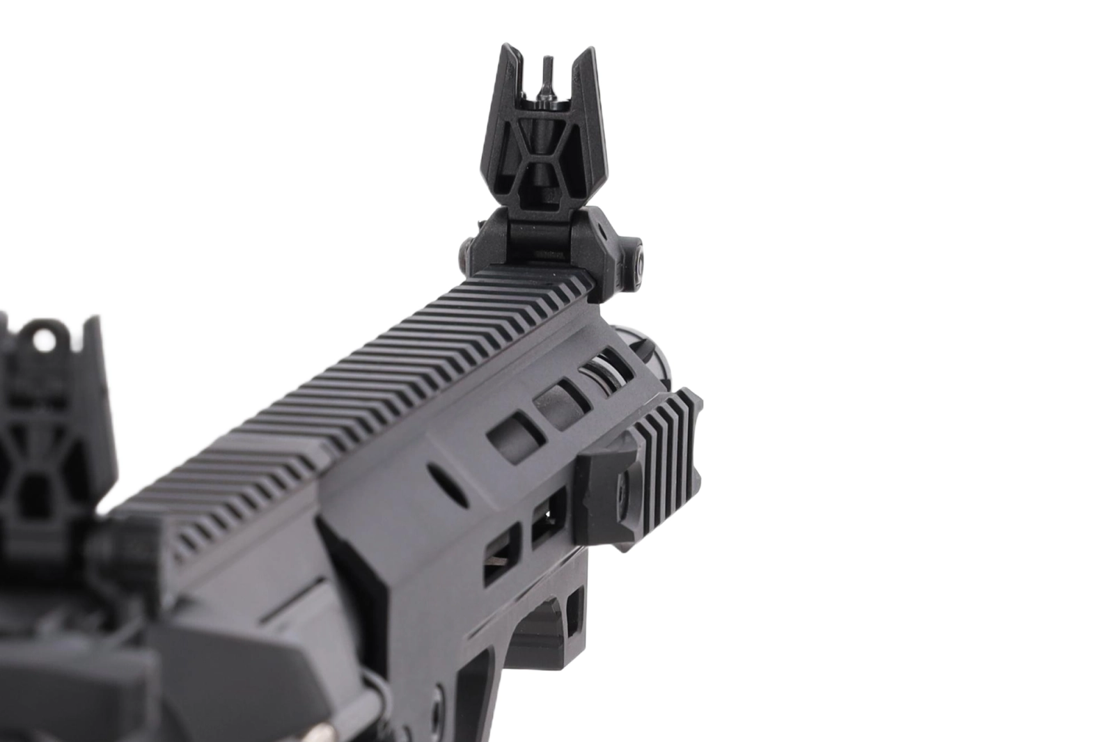 Replika wyposażona jest we front w systemie montażowym M-LOK na którym montować można różnej maści akcesoria taktyczne: latarki, chwyty, wskaźniki laserowe czy celowniki optyczne. Na grzbiecie repliki umieszczono także składane przyrządy celownicze oraz szynę RIS.