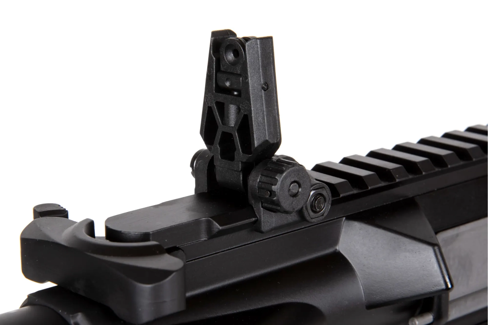 Replika wyposażona jest we frontową szynę RRA Lightweight Free Float Rail w standardzie M-LOK licencjonowaną przez Rock River Arms®. Lufa zakończona jest standardowym urządzeniem wylotowym osadzonym na gwincie 14mm CCW. Na grzbiecie repliki umieszczono składane przyrządy celownicze.