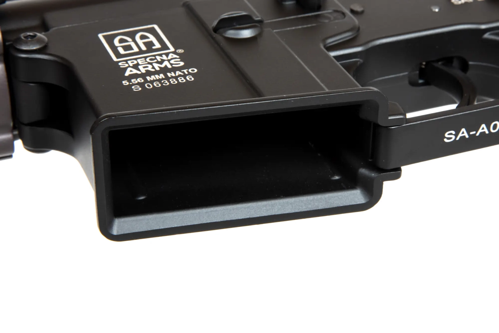 Replika karabinka SA-A03 marki Specna Arms wykonana została w przeważającej części z jednolitego stopu cynku i aluminium, z zastosowaniem elementów stalowych w najbardziej newralgicznych punktach repliki (stalowe są wiec wszystkie śruby, piny oraz uchwyt zawieszenia taktycznego). Kolbę jak i chwyt pistoletowy wytworzono z polimerowego tworzywa sztucznego.