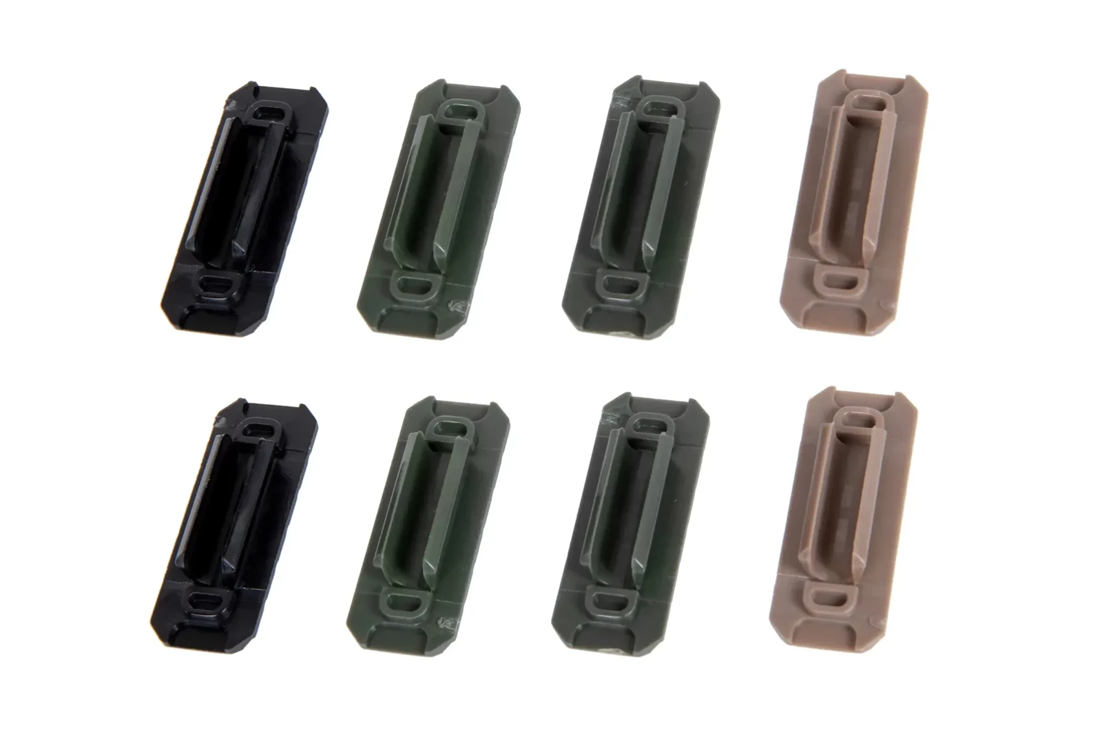 Zestaw 8 okładzin wykonanych z polimerowego tworzywa sztucznego, dedykowanych do montażu na szynach M-LOK.