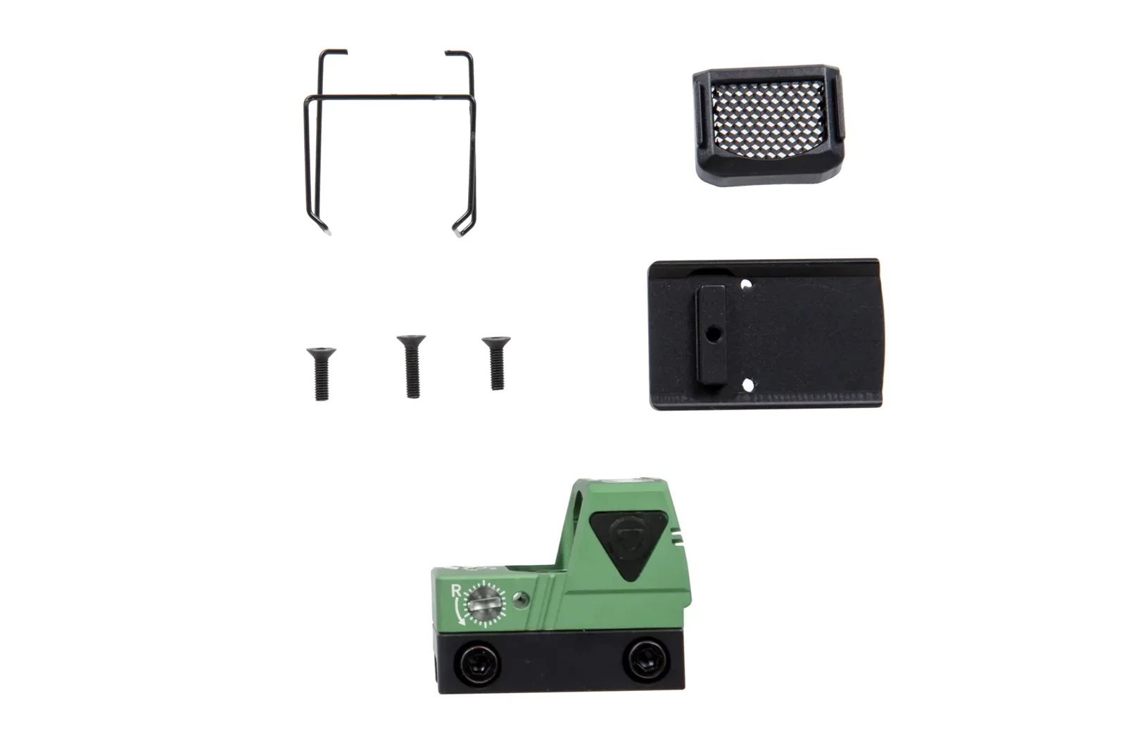 - w zestawie otrzymujemy dodatkowo przezroczystą osłonę, Killflash, płytkę montażowa do replik typu Glock oraz zestaw śrub