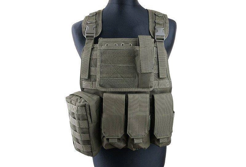 Wykonana z wytrzymałego nylonu kamizelka typu MSBS Plate Carrier. Zaopatrzona w naszyte poziome taśmy PALS na przednim i tylnym panelu. Dzięki temu, możliwe jest przyłączenie do niej dodatkowych ładownic oraz wyposażenia zgodnego z systemem MOLLE. Co więcej, oporządzenie dodatkowe przyłączone może być w dowolny, wygodny dla użytkownika sposób.