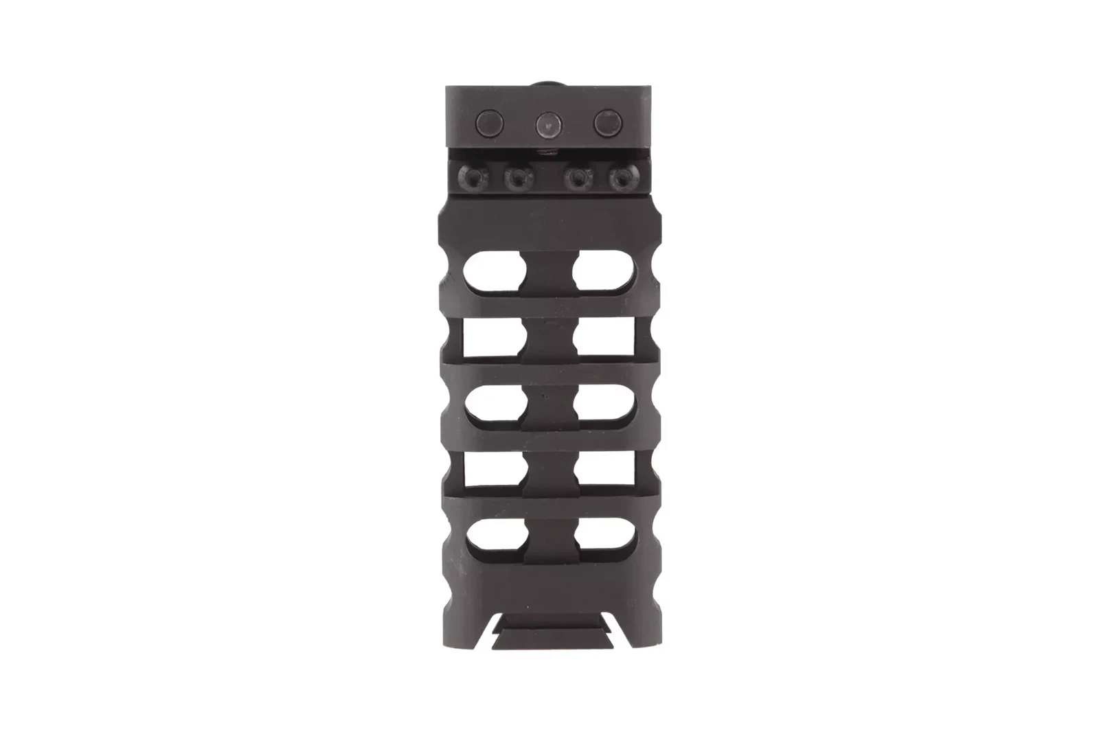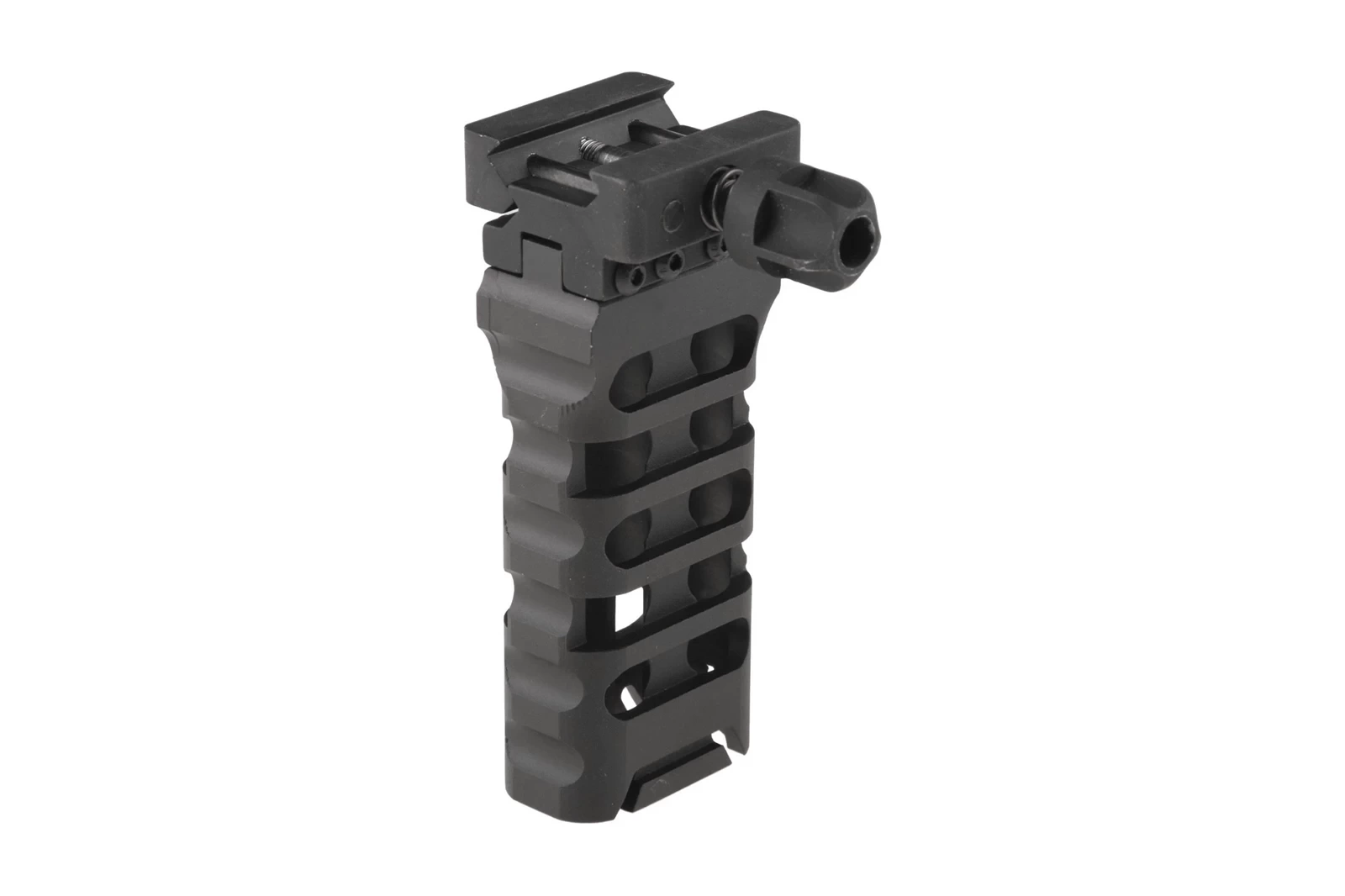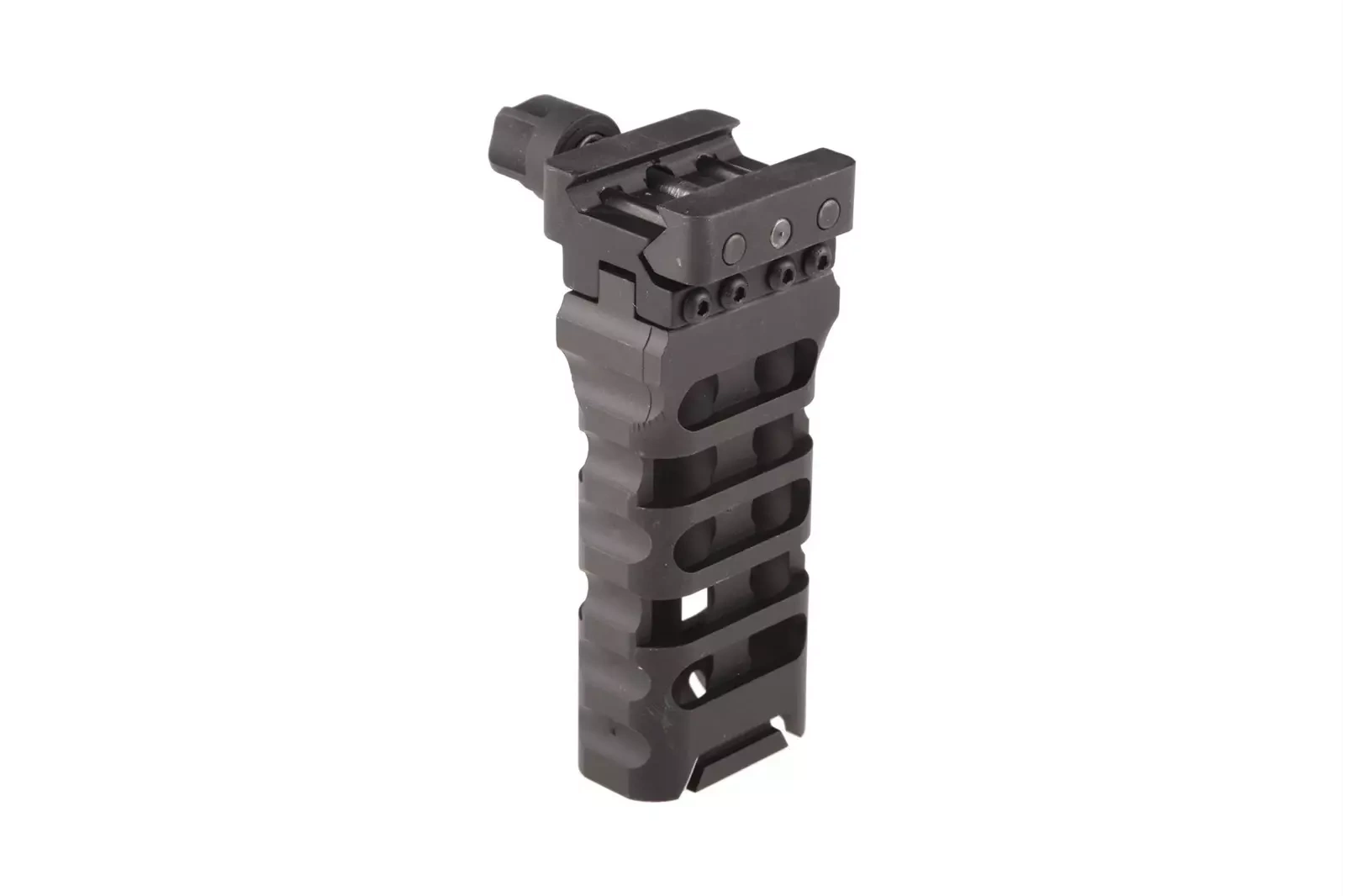 Wykonany z aluminium na maszynach CNC chwyt pionowy przeznaczony do montażu na szynach akcesoryjnych w standardzie RIS 22mm. Chwyt ma strukturę szkieletową, zapewnia więc wysoką wytrzymałość (dzięki wykorzystanemu materiałowi), a jednocześnie niewielką wagę.