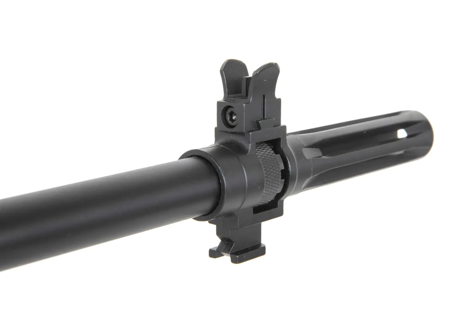 Replika klasycznego karabinka produkcji A&K. Replika została wykonana w głównej mierze z metalu. Do stalowych części należą wszystkie pokrętła oraz śruby, stopka kolby oraz magazynek. Pozostałe elementy takie jak lufa z tłumikiem płomieni, atrapa suwadła i komora zamkowa zostały wykonane ze stopu aluminium. Nakładka lufy oraz kolba zostały wykonane z polimeru o fakturze oraz zabarwieniu drewna.