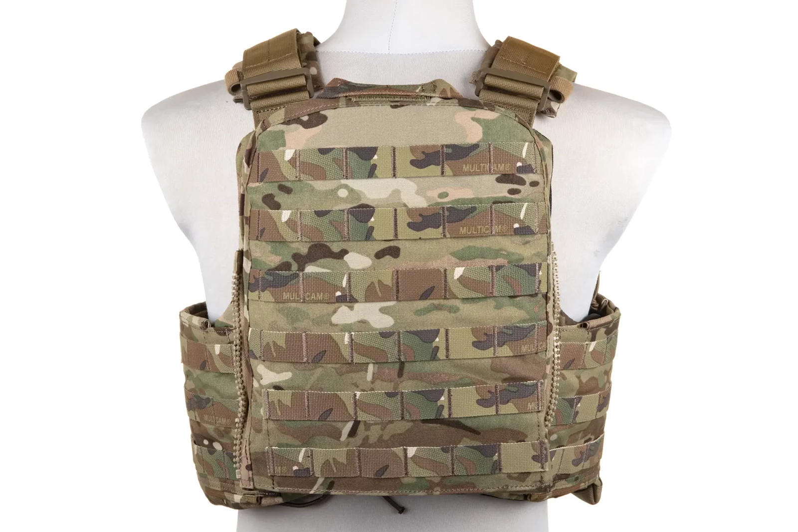 W przedni i tylnym panelu znajdziemy miejsce dla atrap płyty typu SAPI w rozmiarze M. Są one w całości pokryte taśmami zgodnymi z systemem Molle/PALS. W klapie przedniego panelu znajdziemy miejsce na 3 magazynki AR/AK, zabezpieczone dodatkowo linka typu shockcord. Natomiast z tyłu znajdziemy suwaki dla paneli szturmowych czy plecaków. Również na obu panelach możemy znaleźć rzep do przymocowania naszywek czy innych akcesoriów.