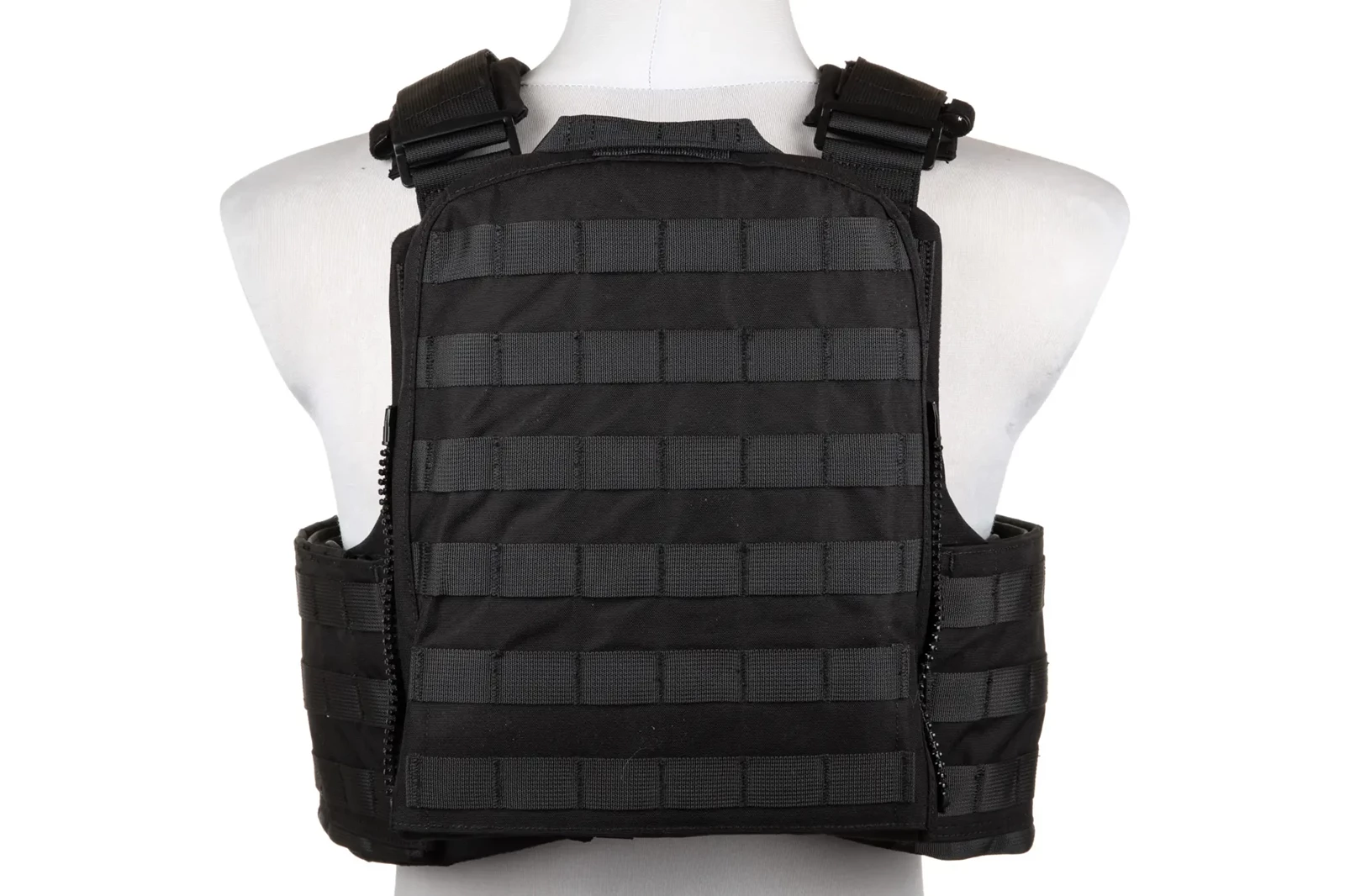 W przedni i tylnym panelu znajdziemy miejsce dla atrap płyty typu SAPI w rozmiarze M. Są one w całości pokryte taśmami zgodnymi z systemem Molle/PALS. W klapie przedniego panelu znajdziemy miejsce na 3 magazynki AR/AK, zabezpieczone dodatkowo linka typu shockcord. Natomiast z tyłu znajdziemy suwaki dla paneli szturmowych czy plecaków. Również na obu panelach możemy znaleźć rzep do przymocowania naszywek czy innych akcesoriów.