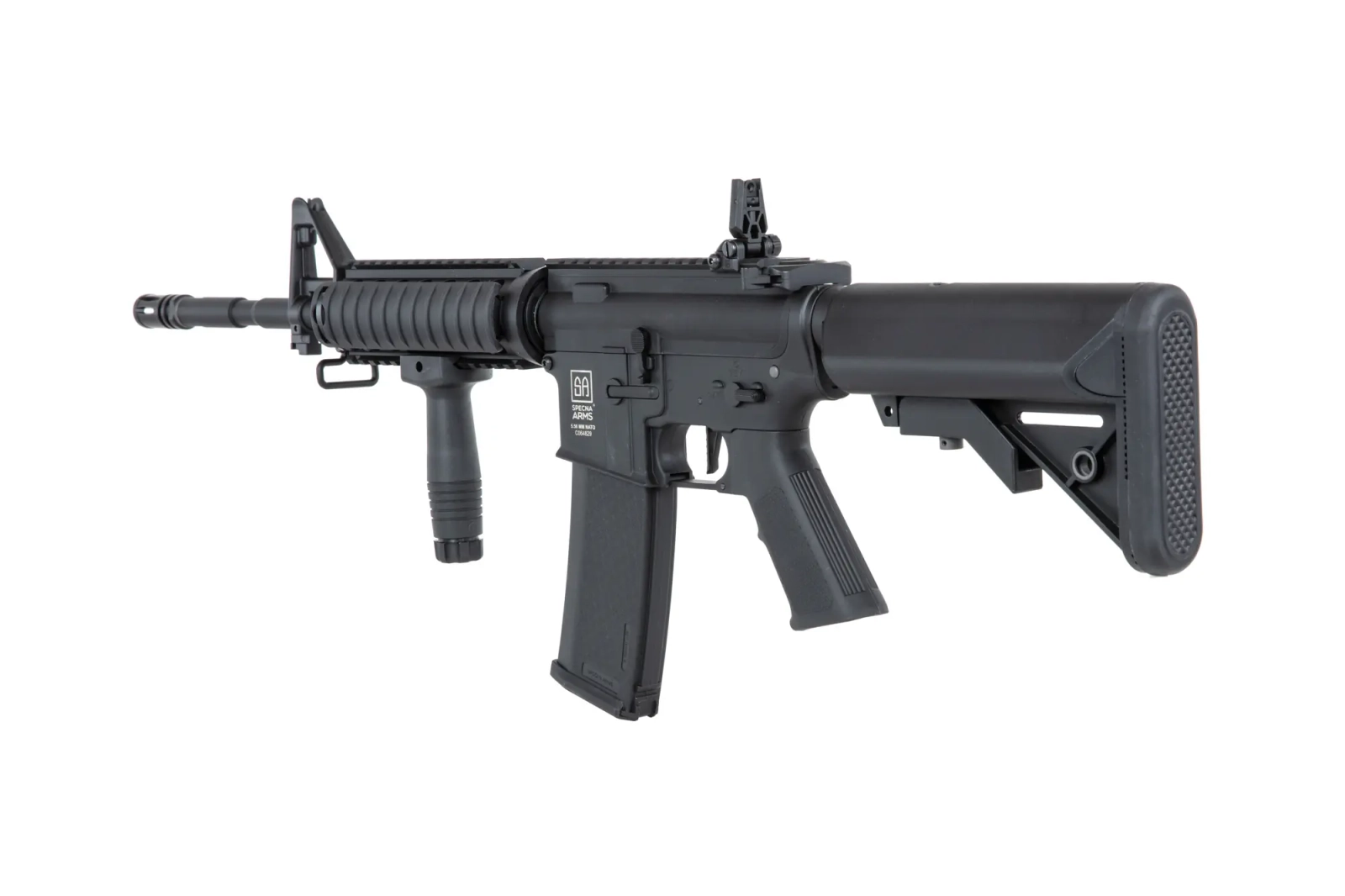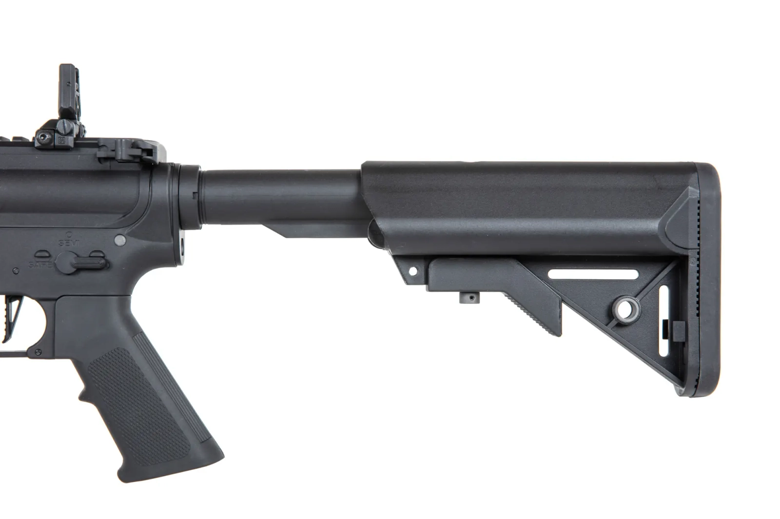 Korpus, prowadnicę wraz z mieszczącą akumulator powiększoną kolbę typu SF jak i chwyt pistoletowy wytworzono z polimerowego tworzywa sztucznego wzmocnionego włóknem nylonowym. Pozostałe części składowe takie jak np. lufa, front RIS, tłumik płomienia, powiększona rączka przeładowania i montaż zawieszenia taktycznego zostały wykonane z metalu (ze stali wykonano wszelkie śruby, piny, okno wyrzutu łusek oraz atrapę zamka). Na korpusie naniesione zostały oznaczenia oraz nr seryjny.