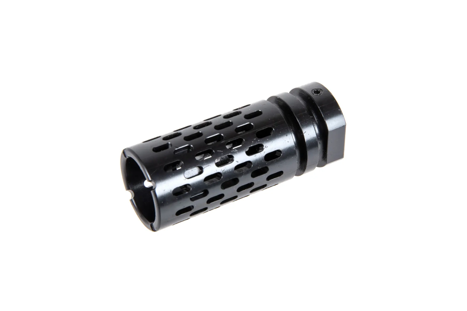 Wysokiej jakości replika urządzenia wylotowego wykonana z oksydowanej stali. W zestawie znajduje się podkładka/ dystanser.