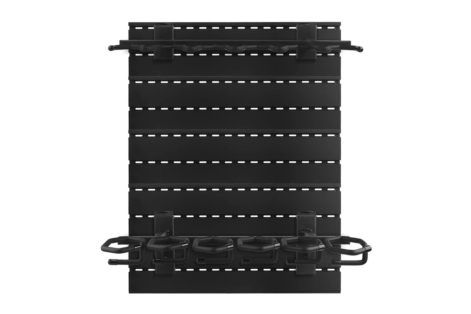 Po zamontowaniu panelu na ścianie, użytkownik może wykorzystać mocowania, aby móc przyozdobić ścianę swoimi replikami.