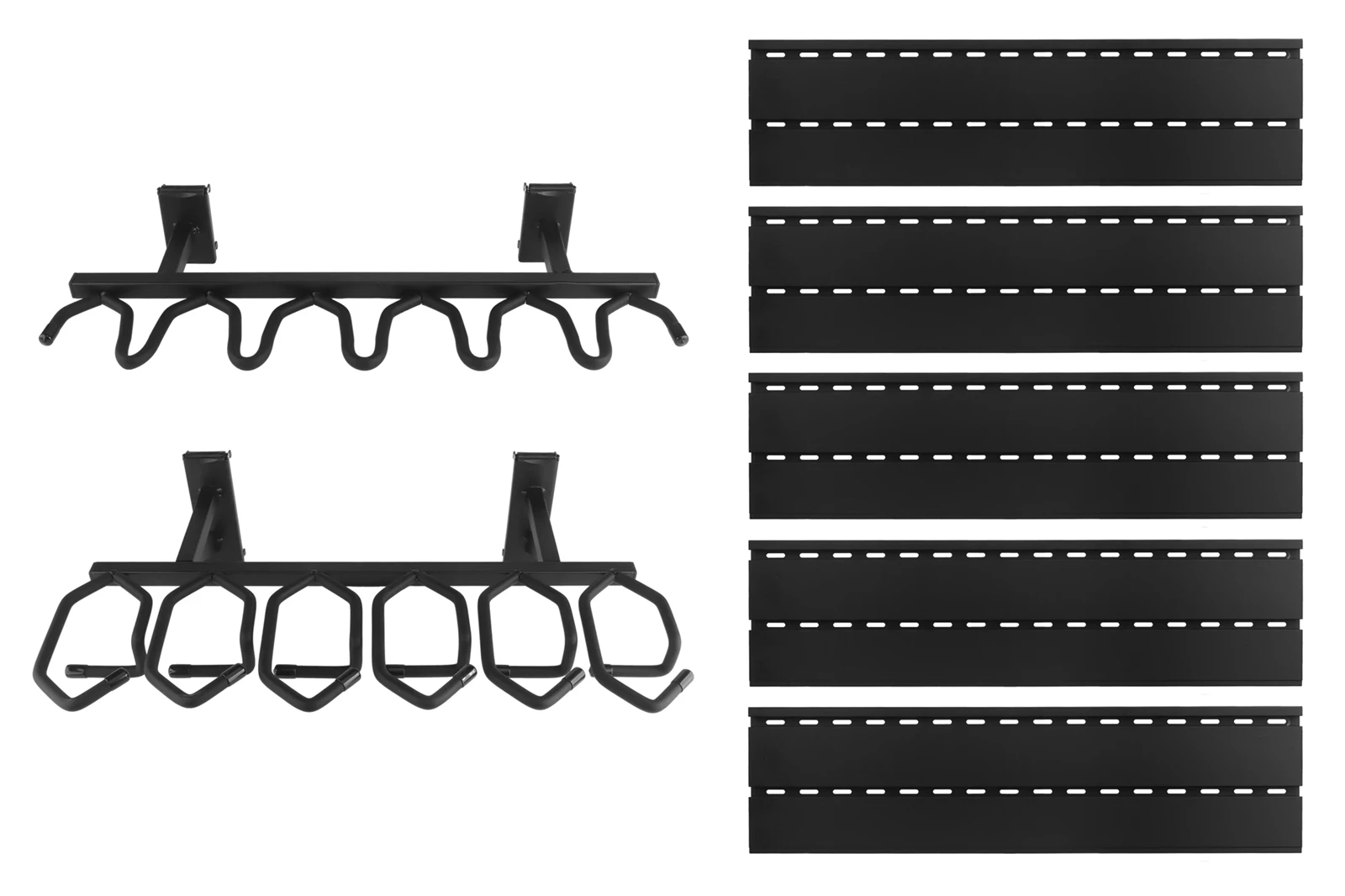 Panel montażowy na ścianę od firmy Specna Arms składa się z 5 aluminiowych płyt montażowych o wymiarach 60x16 cm (wymiary pojedynczej płyty) oraz dodatkowych akcesoriów montażowych takich jak: