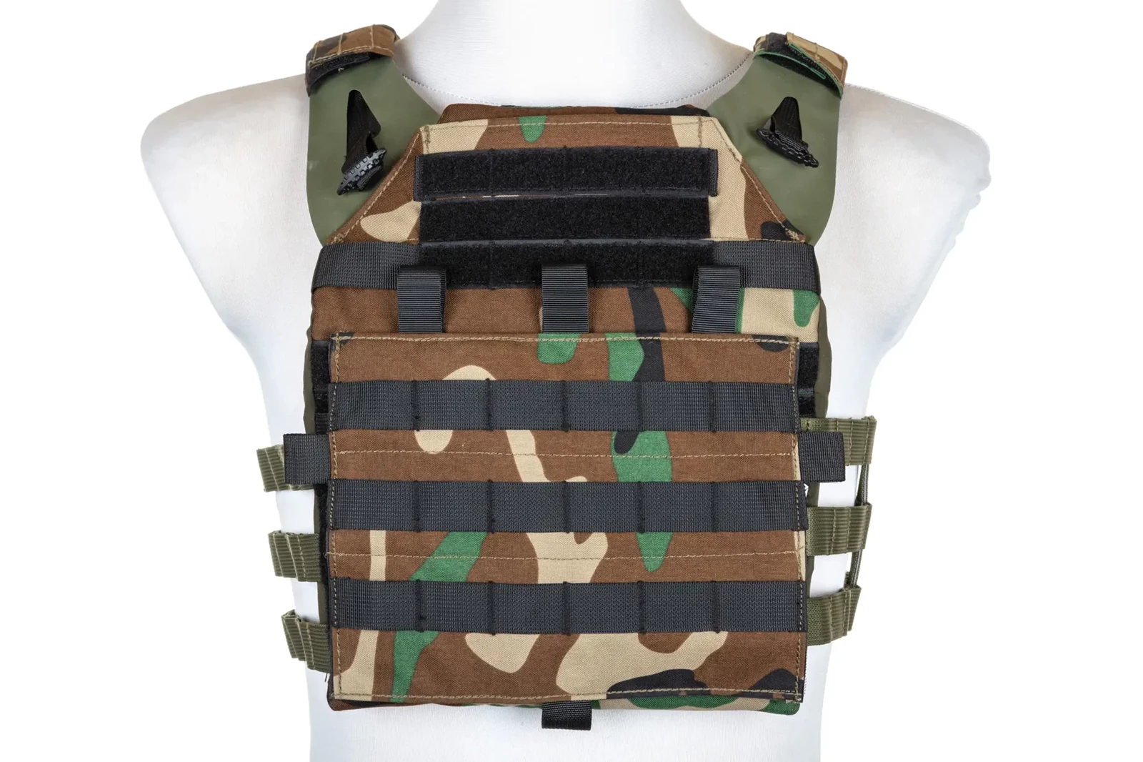 Kamizelka taktyczna Specna Arms Tactical typu Plate Carrier z panelem szturmowym Woodland