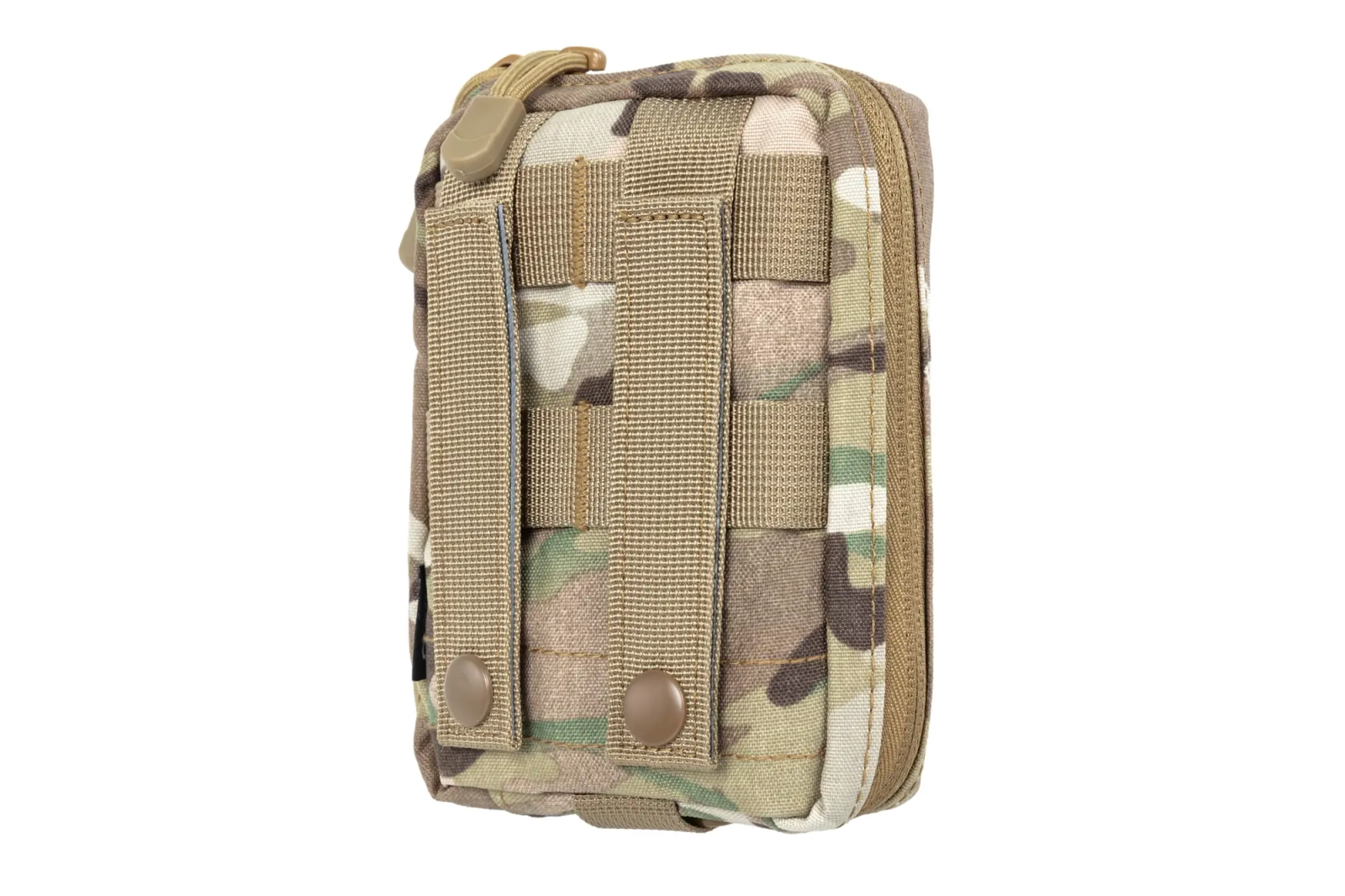 Mała apteczka Specna Arms Tactical z wytrzymałego CORUND™ 500D, zamykana dwubiegunowym zamkiem, otwierającym się na całej długości dla łatwego dostępu. Wnętrze wyposażone w elastyczne taśmy i linki mocujące, które ułatwią organizację transportowanego wyposażenia medycznego. Model wyposażono w mocowanie kompatybilne z systemem MOLLE, co pozwoli zamocować produkt na kamizelkach, pasach lub plecakach. Dla lepszej identyfikacji, front posiada oznaczenie medyczne. Co więcej, również na froncie znajdziemy panel-rzep, który umożliwi mocowanie dodatkowych naszywek czy identyfikatorów.
