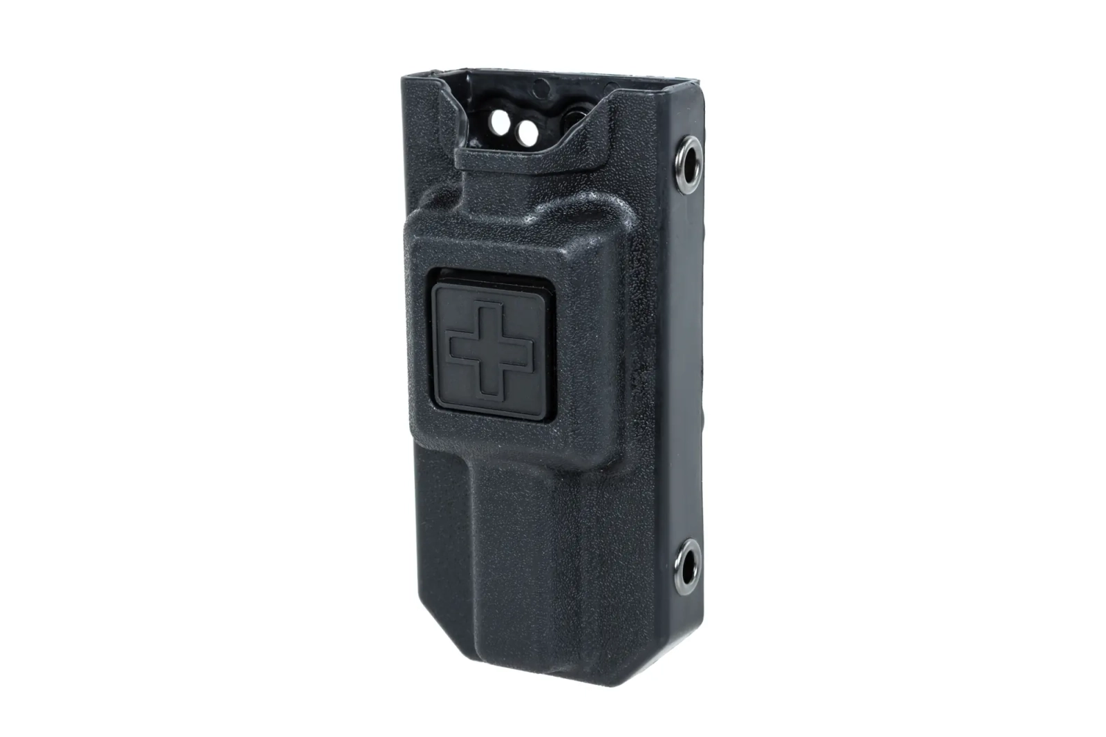 Ładownica na stazę taktyczną typu CAT została wykonana przy wykorzystaniu wytrzymałego tworzywa. Model jest kompatybilny z systemem MOLLE, co umożliwi zamocowanie na pasie, kamizelce czy bezpośrednio na apteczce. Front posiada naklejony symbol medyczny, który pozwoli na szybką identyfikację ładownicy