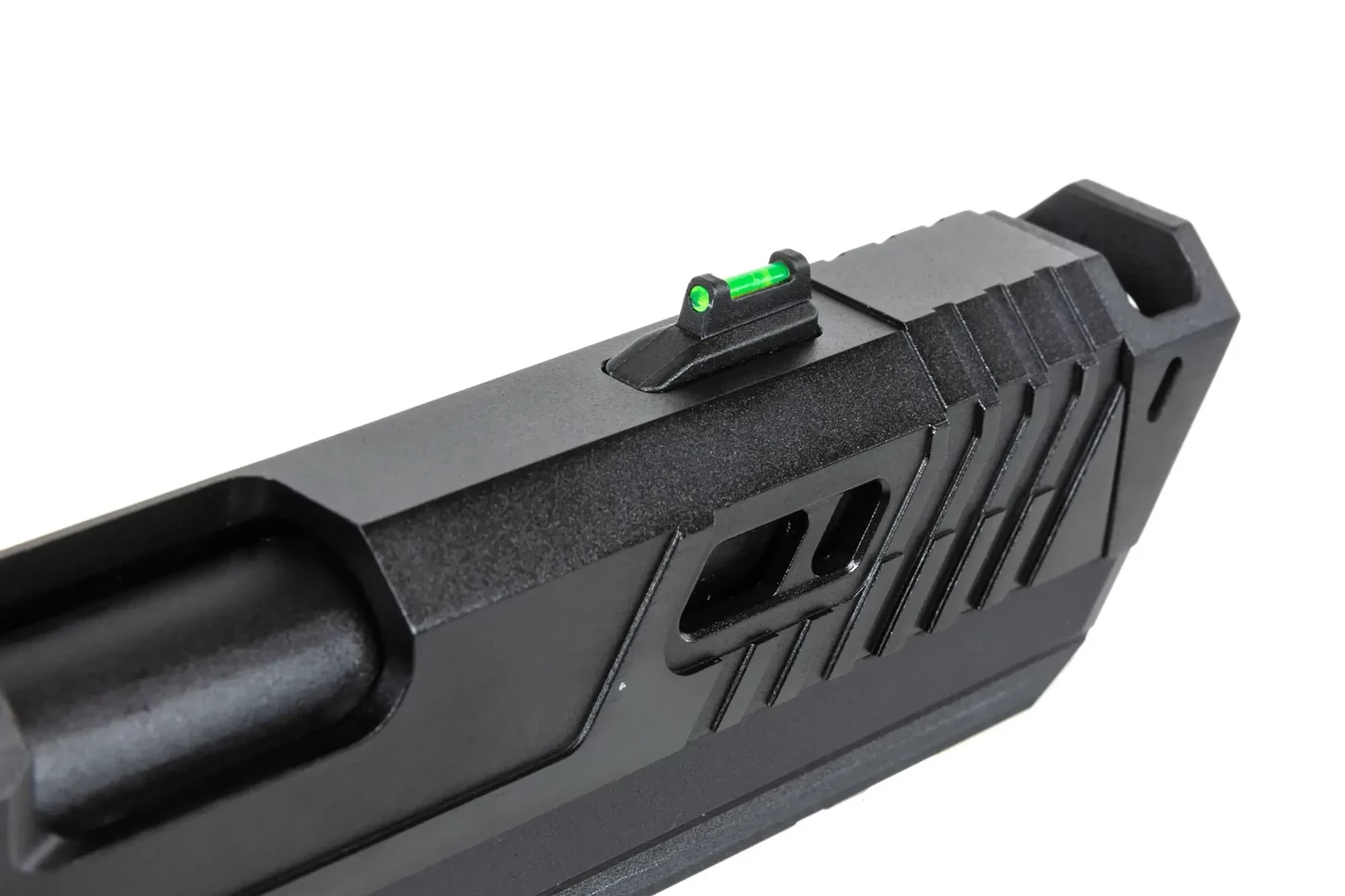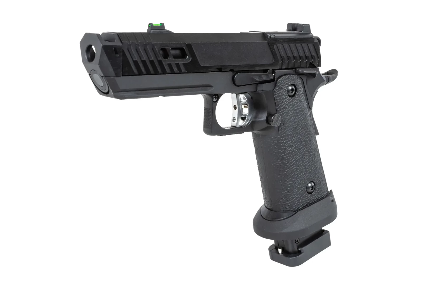 Pistolet ASG od firmy SRC został wykonany przy wykorzystaniu metalu oraz tworzywa sztucznego. Pistolet może być zasilany zarówno magazynkami na CO2 jak i magazynkami zasilanymi green gasem. W zestawie dołączono magazynek na CO2 na 32 kulki.