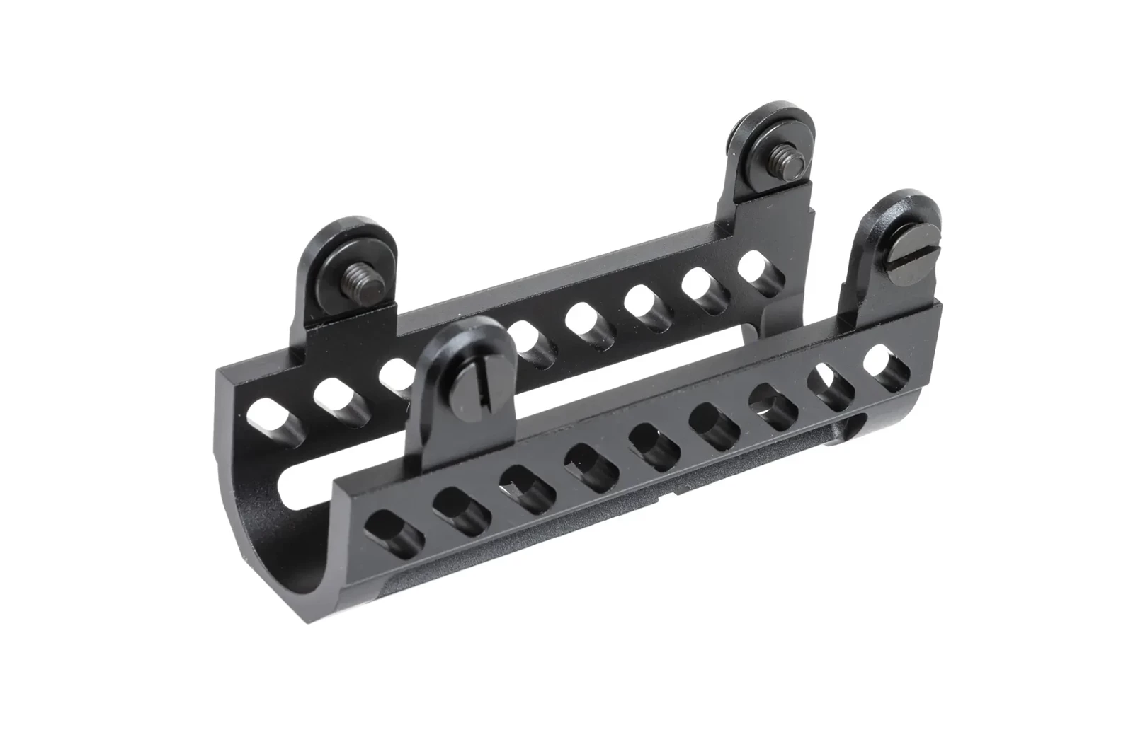 Górna szyna do łoża ZB-11U wykonana w całości z trwałego i lekkiego aluminium, doskonale odwzorowuje rosyjski oryginał przeznaczony do broni palnej. Szyny pozwalają ulepszyć funkcjonalność i wygląd klasycznej konstrukcji karabinka AK. Szynę montuje się do łoża za pomocą 4 śrub dołączonych do zestawu.